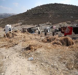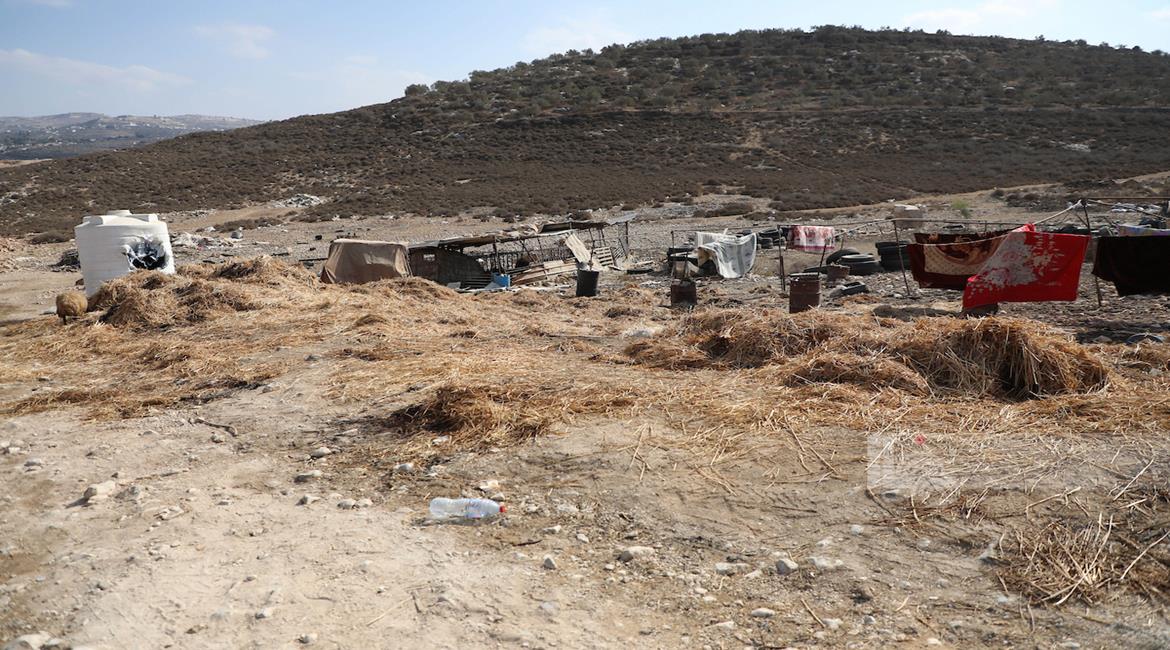 مواطنون يتفقدون منازلهم وحظائرهم المهدمة بعد أن هدمتها قوات الاحتلال بالجرافات في منطقة مسافر يطا