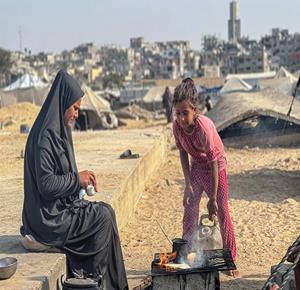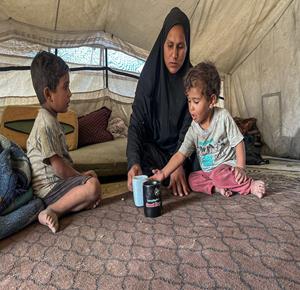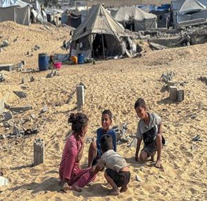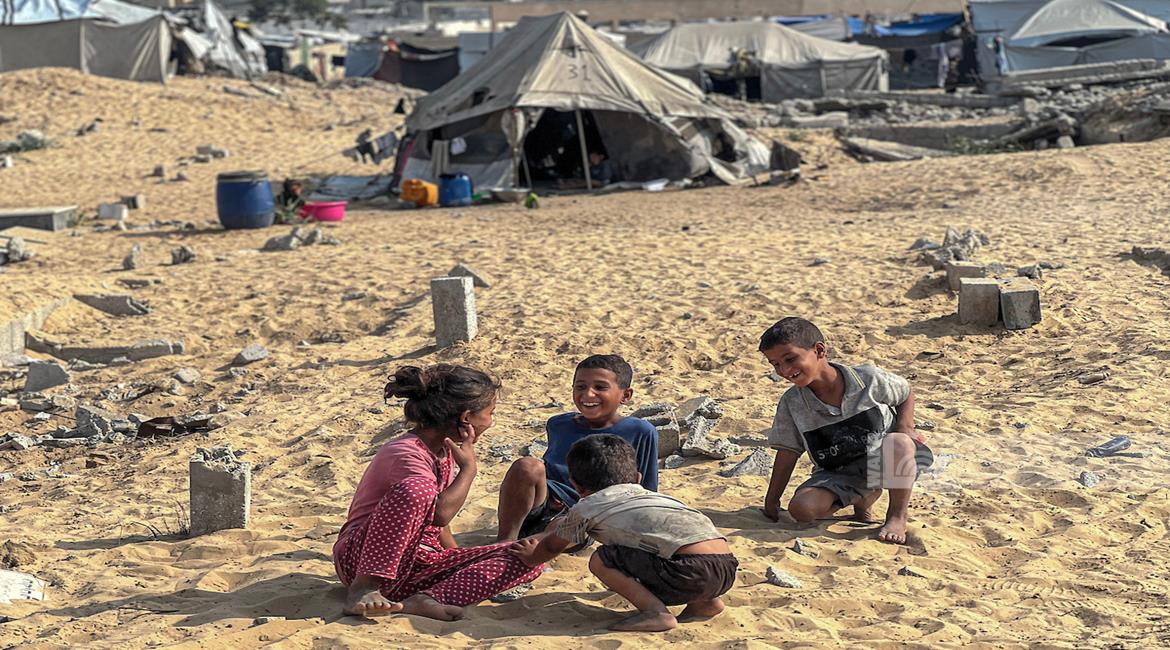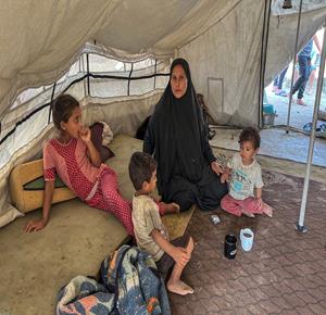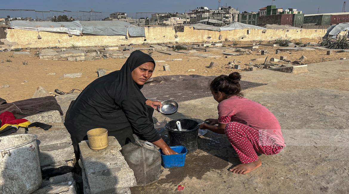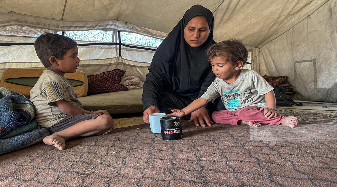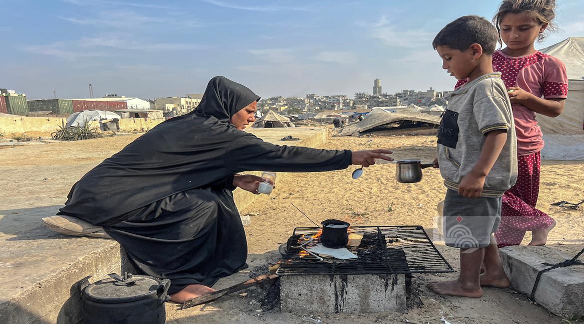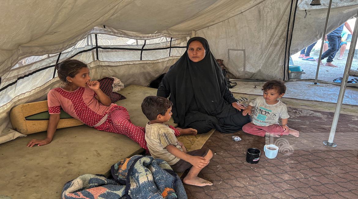 غزة - المواطنة آلاء شبات، تعيش مع أطفالها الستة في خيمة نصبت داخل مقبرة النمساوي بخان يونس جنوب قطاع غزة