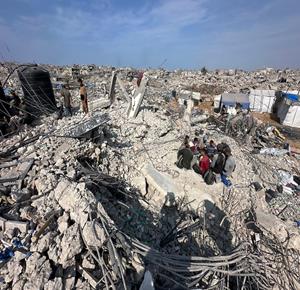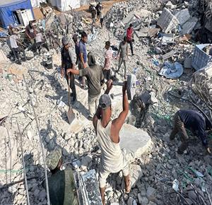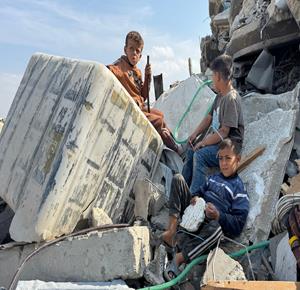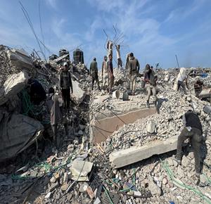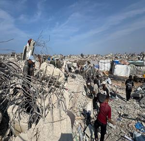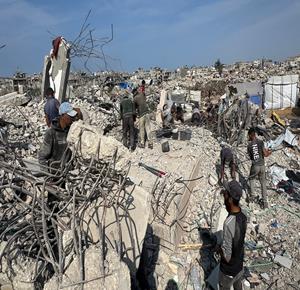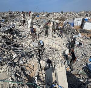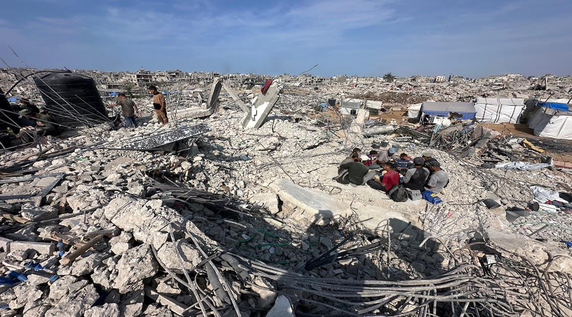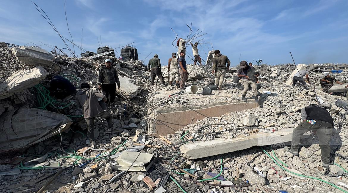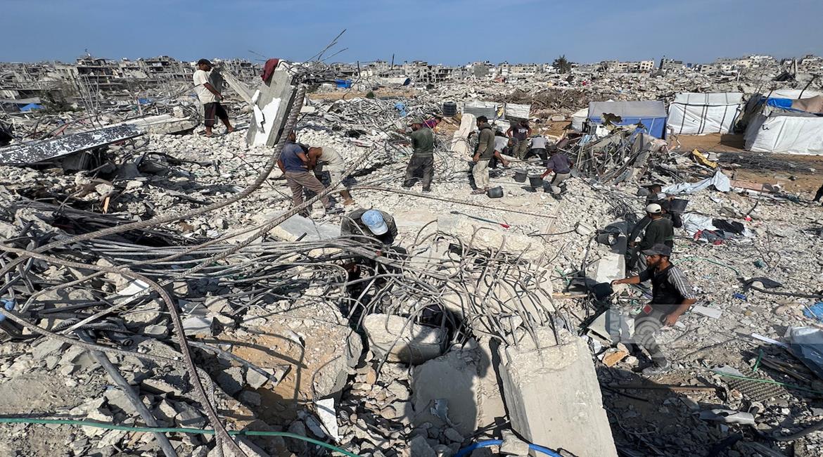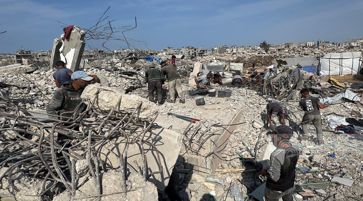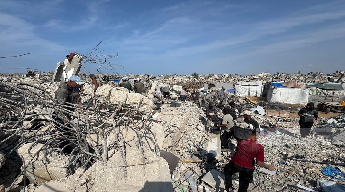 غزة - مواطنون يزيلون ركام منازلهم المدمرة لتمهيد المكان لنصب خيام تأويهم في جباليا شمال قطاع غزة