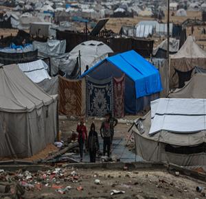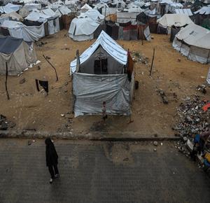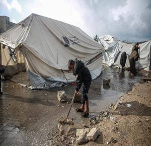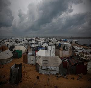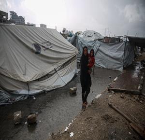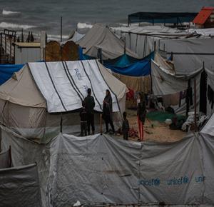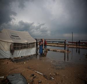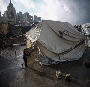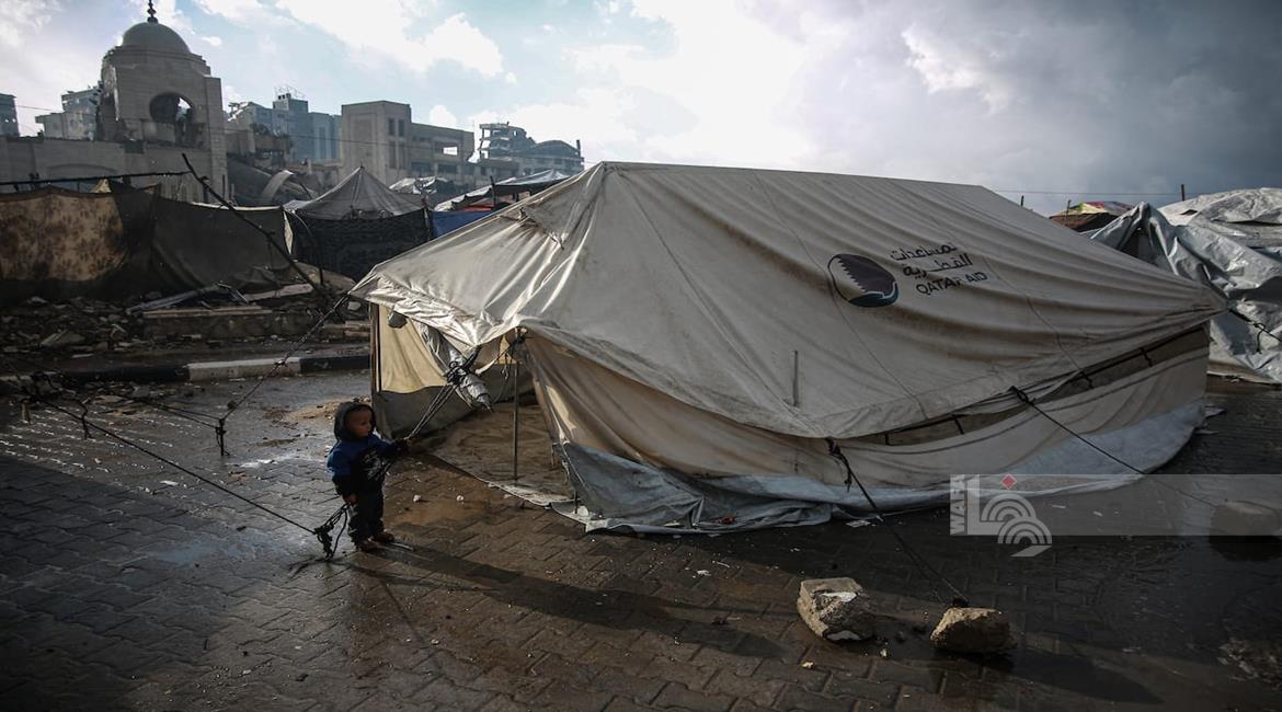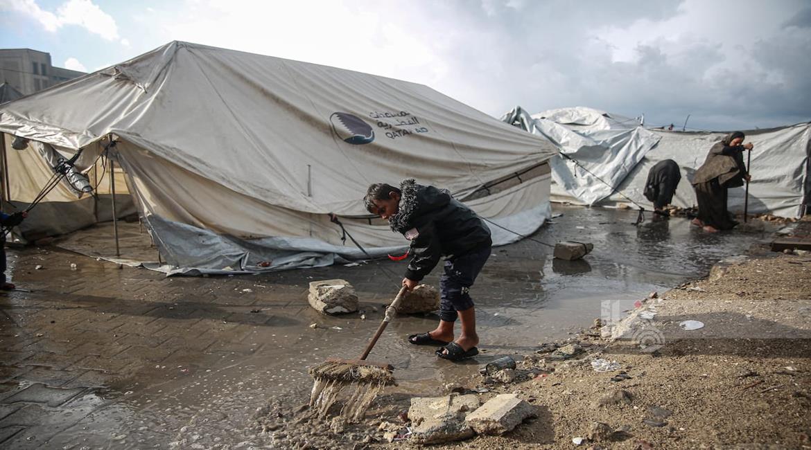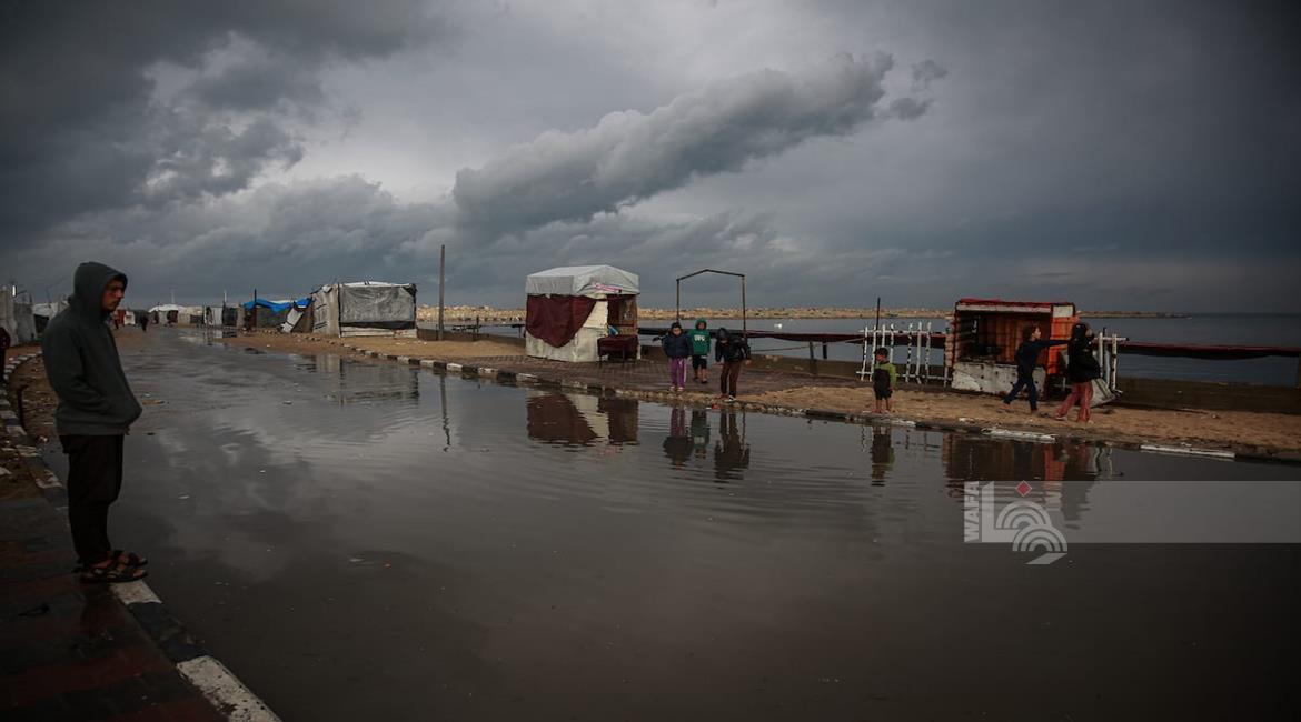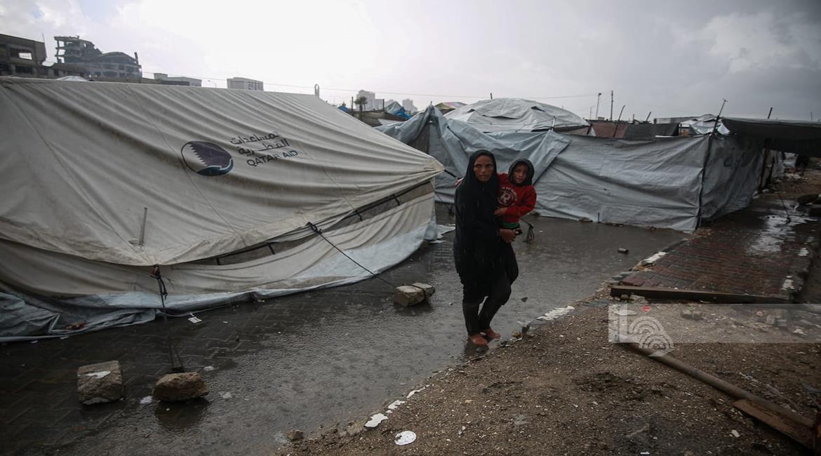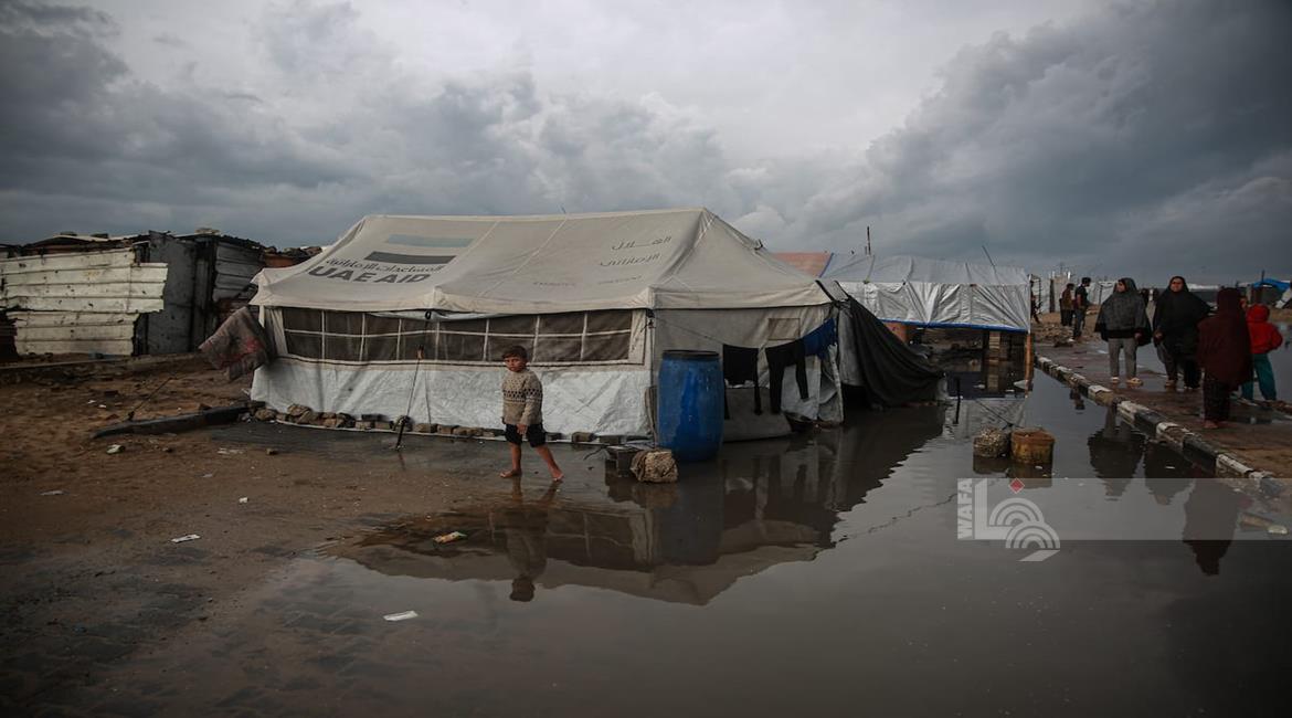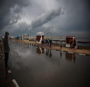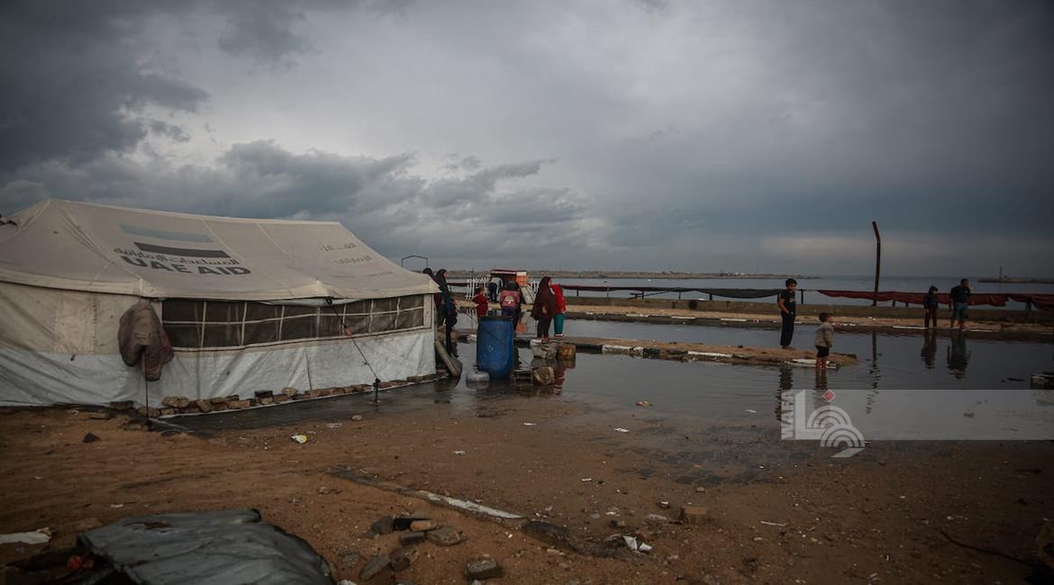 غزة - مياه الأمطار تغرق خيام النازحين في مدينة غزة