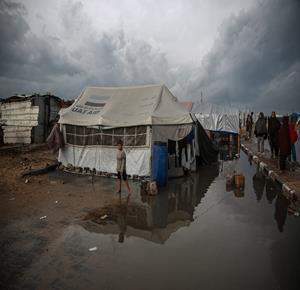 مياه الأمطار تغرق خيام النازحين في مخيم البريج