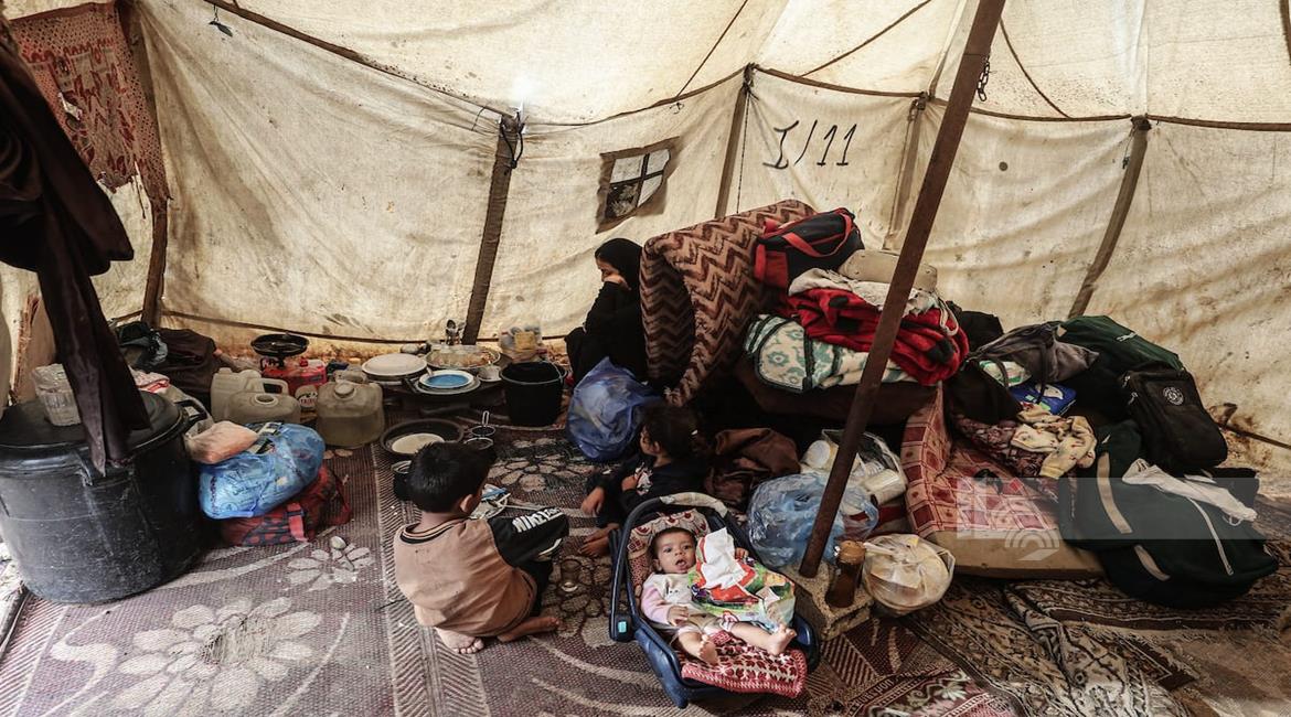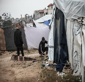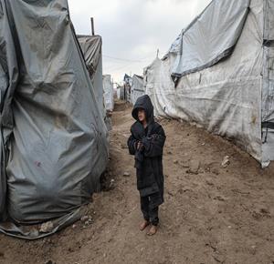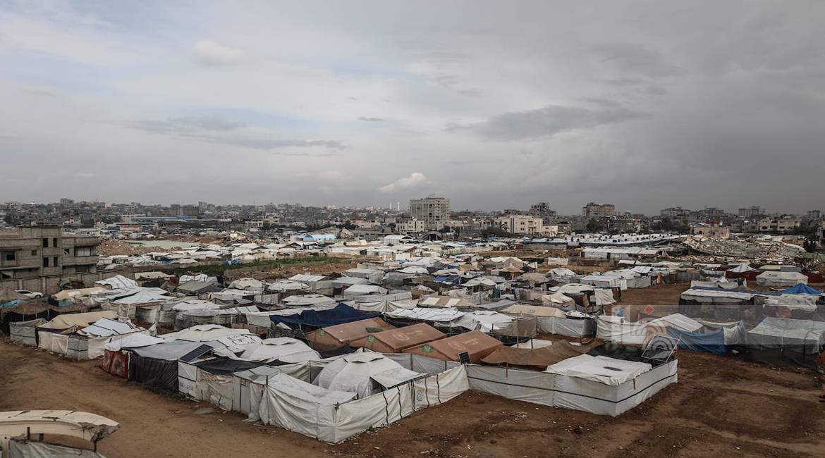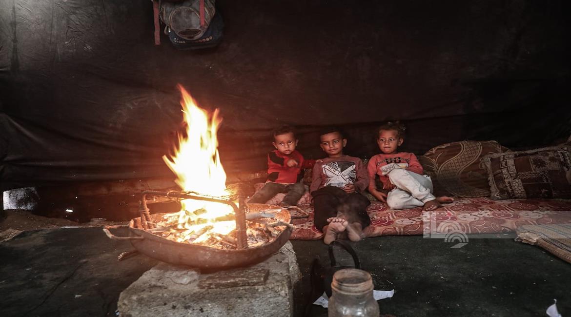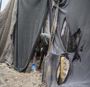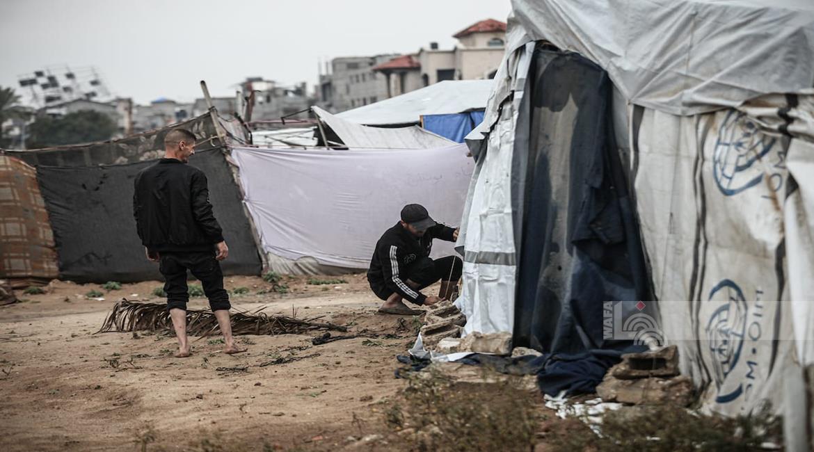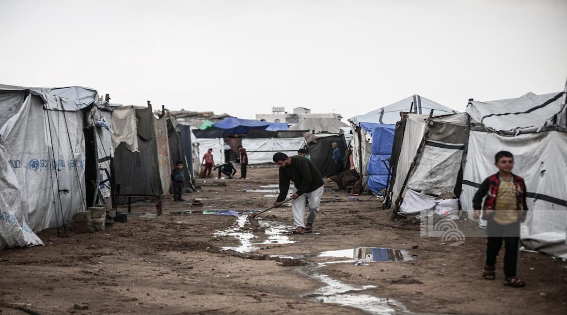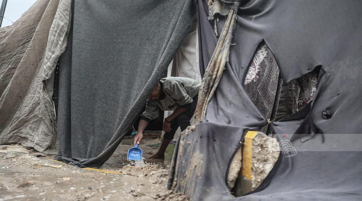 مياه الأمطار تغرق خيام النازحين في مدينة غزة