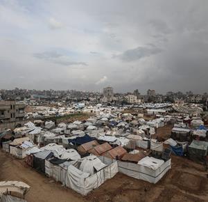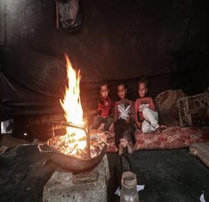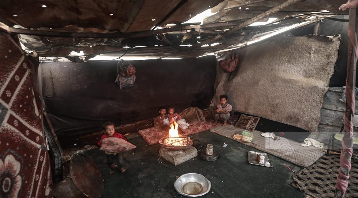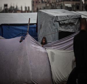 غزة - مياه الأمطار تغرق خيام النازحين في مخيم البريج