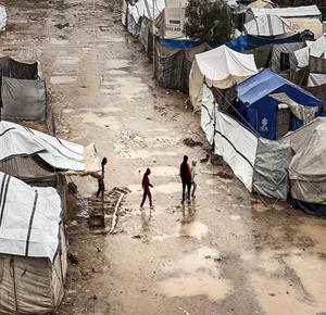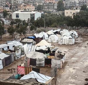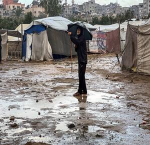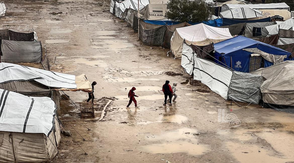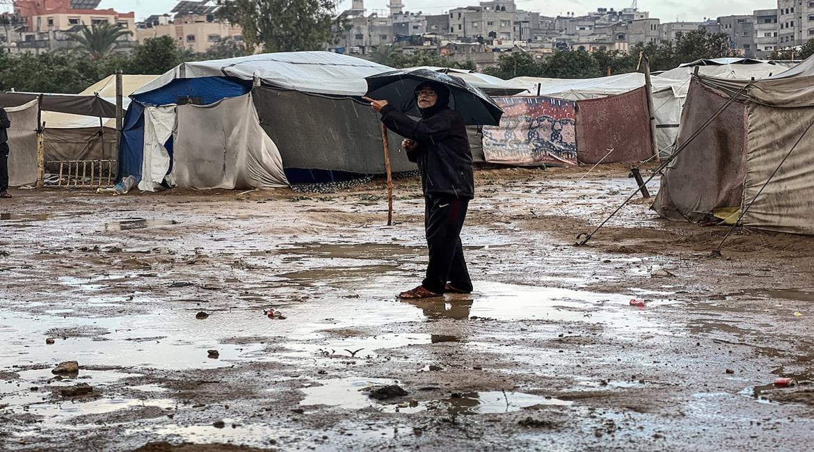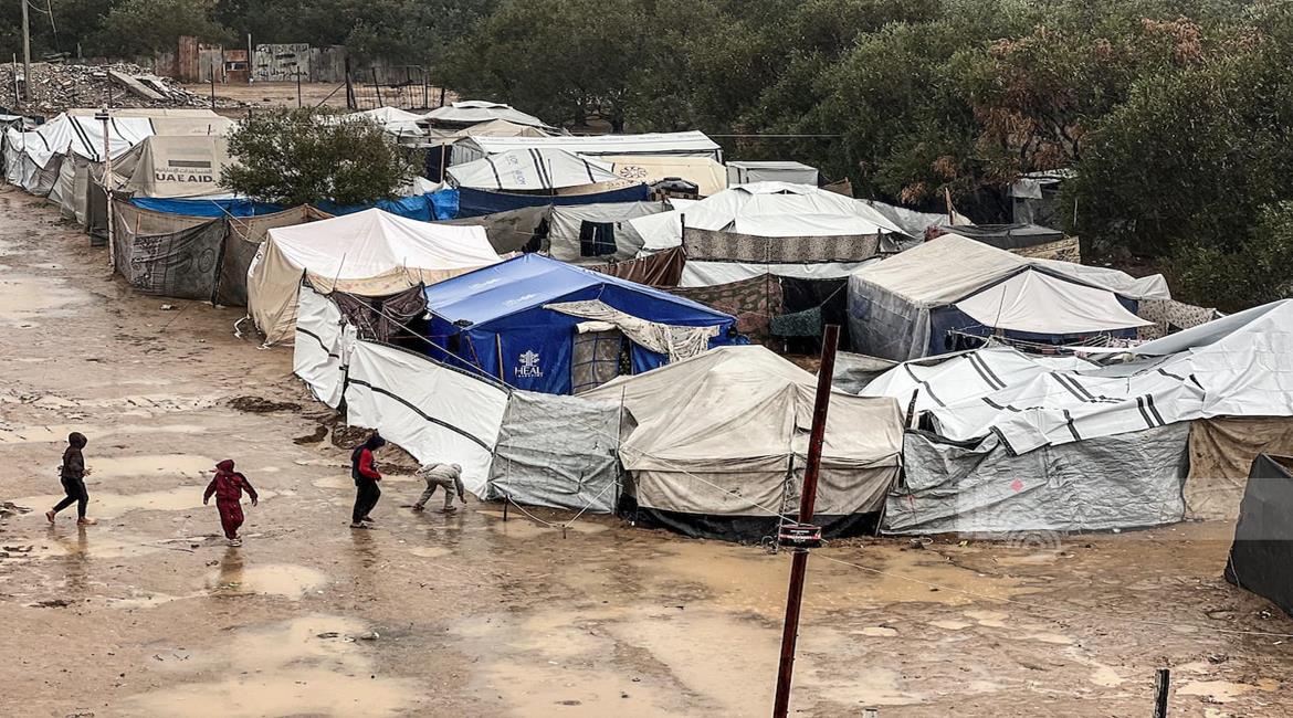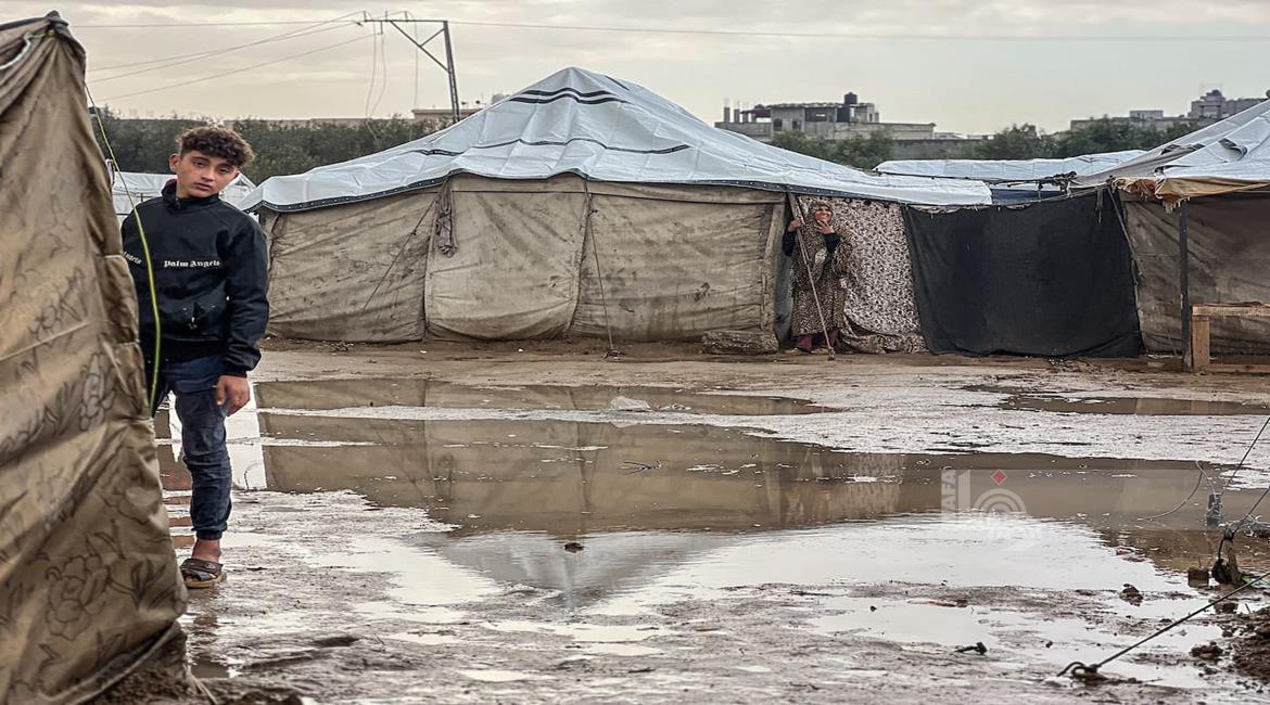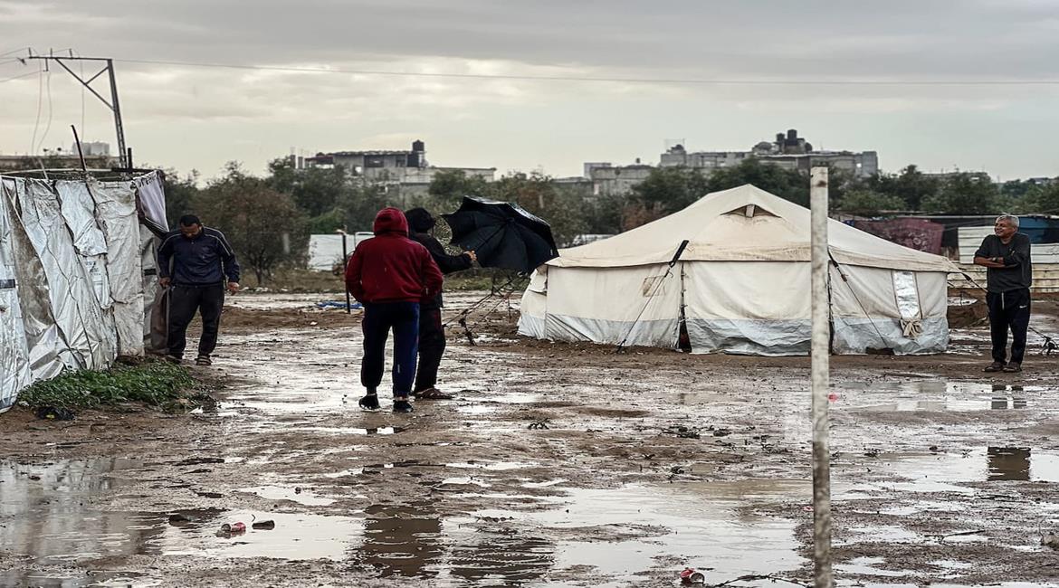 غزة - مياه الأمطار تغرق خيام النازحين في مخيم النصيرات