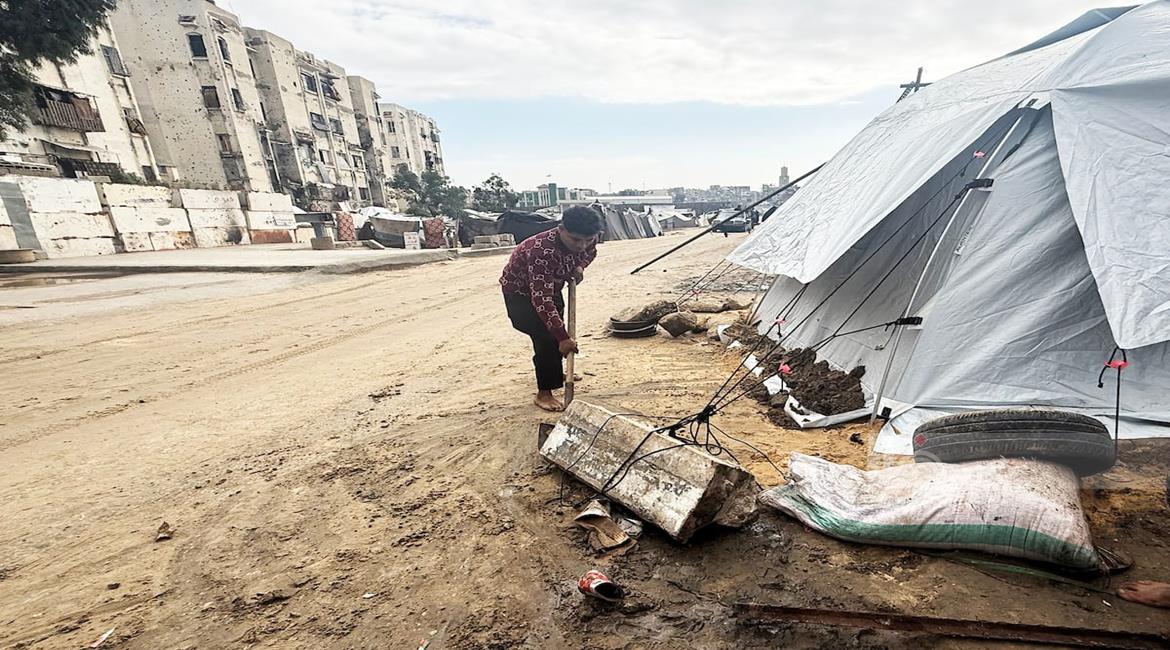 غزة - معاناة المواطنين مع دخول المنخفض الجوي في خان يونس
