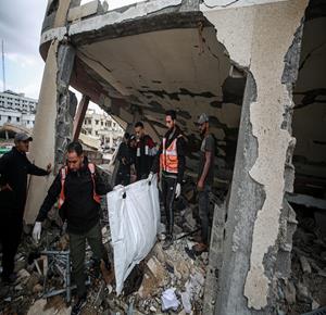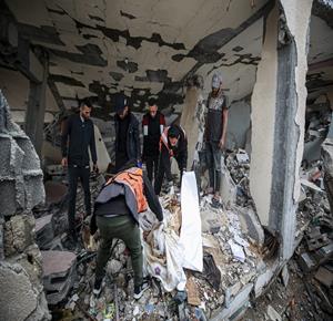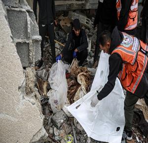 غزة - مواطنون يعثرون بعد أكثر من شهرين ونصف من البحث على رفات الطفلة ماسة عجور (5 سنوات) تحت منزلها الذي دُمّر في القصف الاسرائيلي في مدينة غزة.