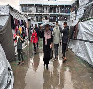 حياة قاسية يعيشها النازحون في ظل الاجواء الماطرة في مدينة غزة