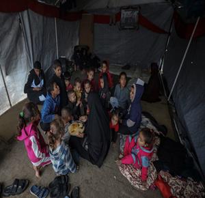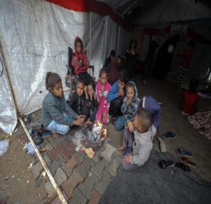 غزة - المسنان أم محمد وأبو محمد عليوة من حي الشجاعية شرق مدينة غزة يعتنيان بستة وثلاثين حفيدا بعد فقدان خمسة من أبنائهما خلال الحرب، ويعيش أفراد العائلة داخل خيمة بظروف معيشية صعبة تتفاقم مع اقتراب فصل الشتاء