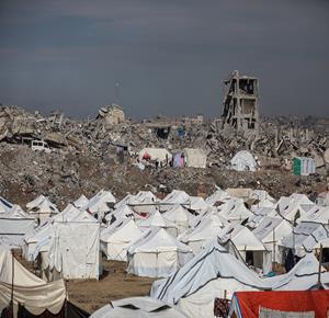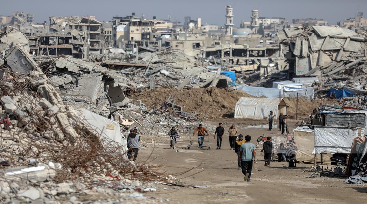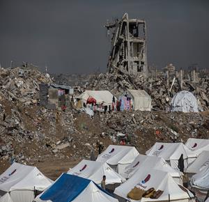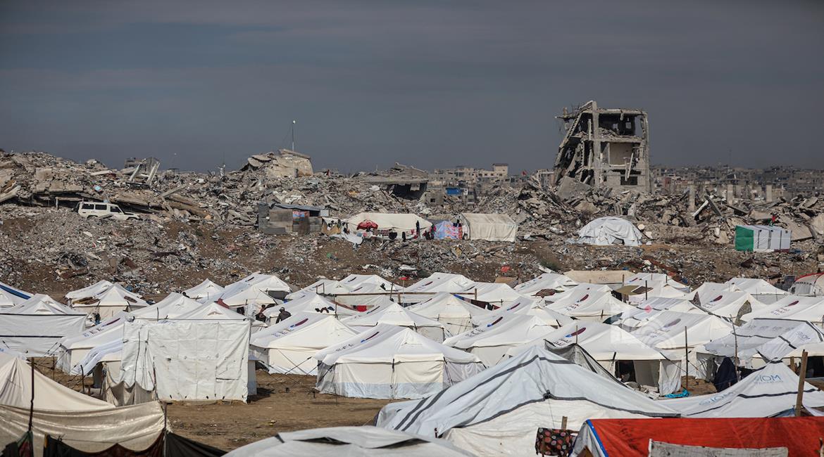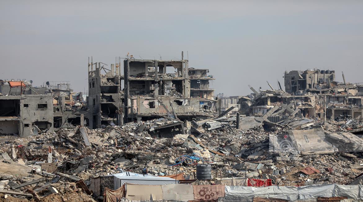غزة - مشاهد لتكدس خيام النازحين وسط الدمار الواسع في حي الزيتون جنوب شرق مدينة غزة