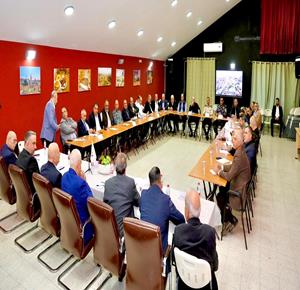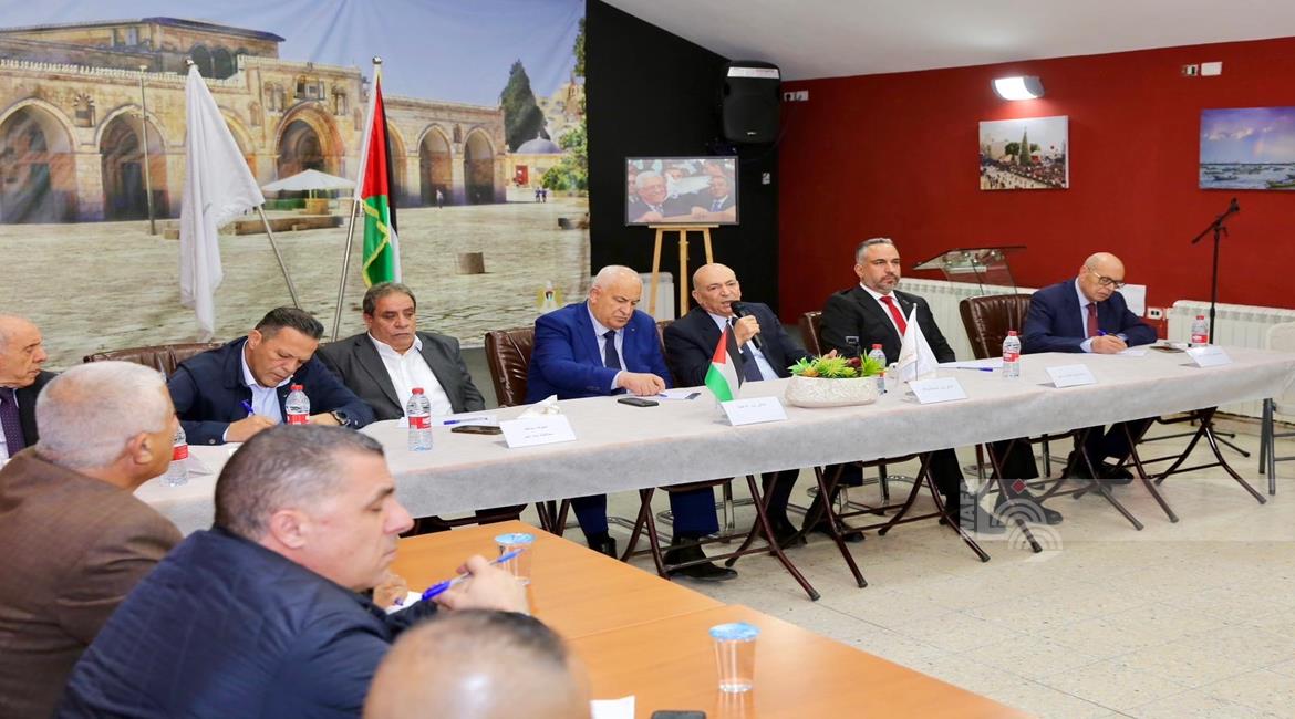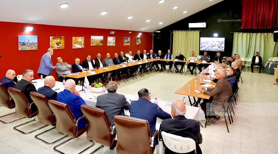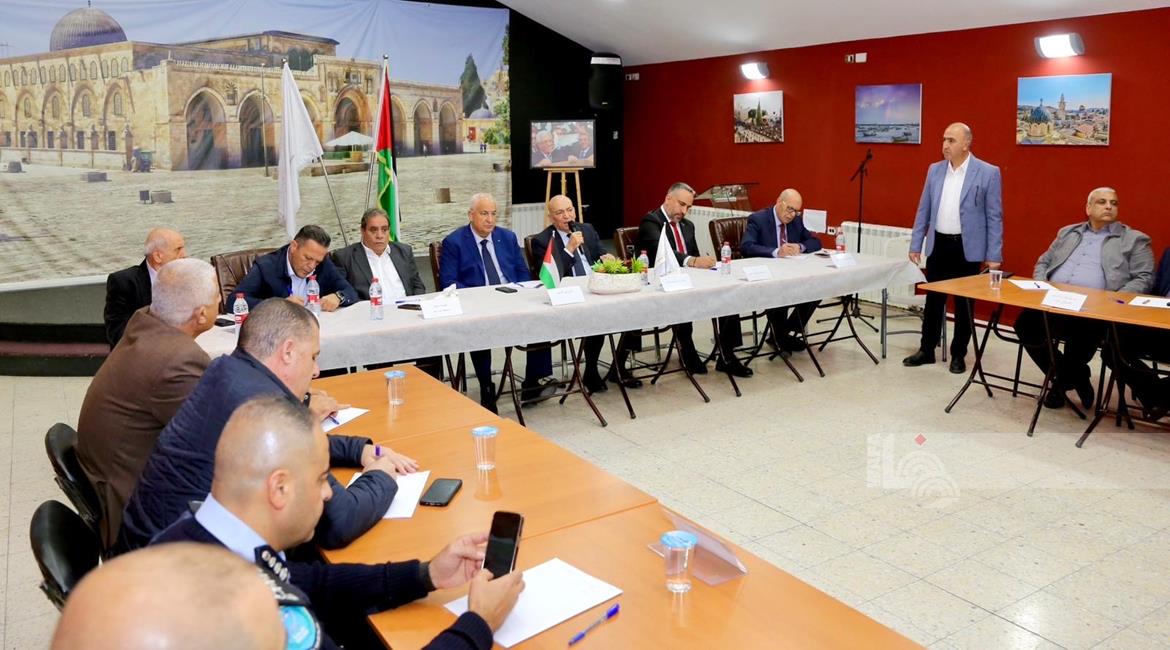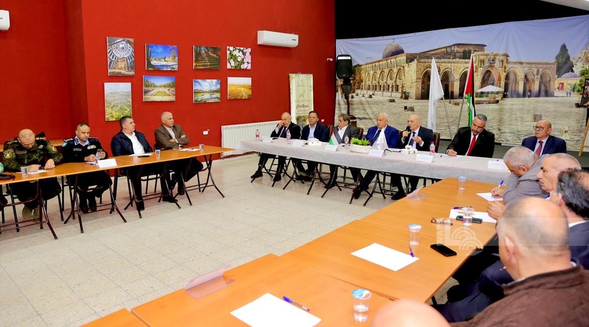 اجتماع بحضور وزير الداخلية اللواء زياد هب الريح في مقر محافظة جنين لبحث قضايا السلم الأهلي في المحافظة.