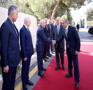 عمان - رئيس الوزراء محمد مصطفى خلال لقائه رئيس الوزراء الأردني جعفر حسان في العاصمة الأردنية عمان