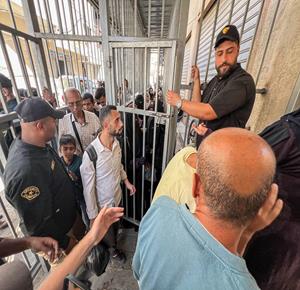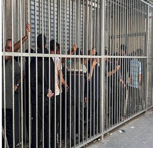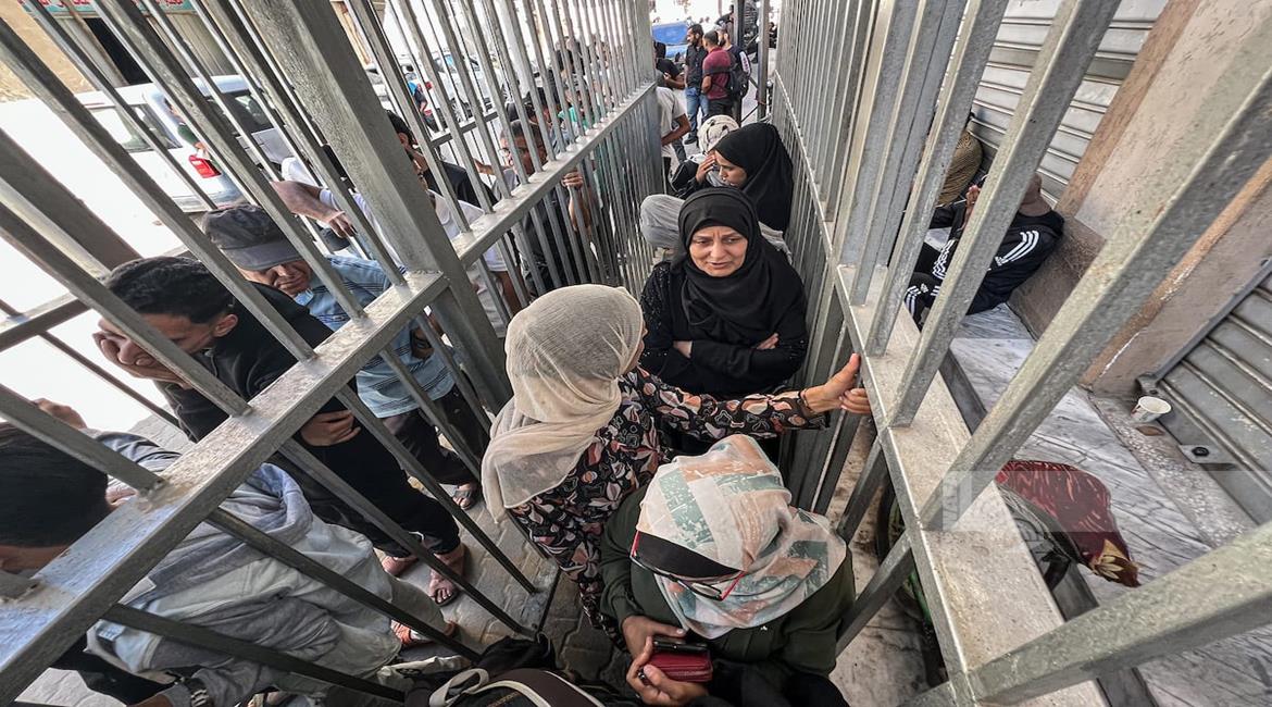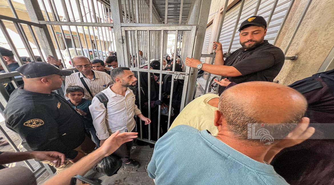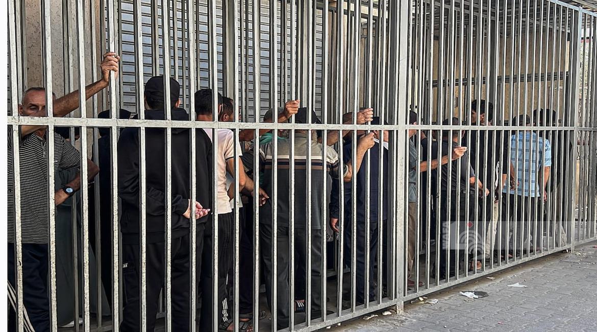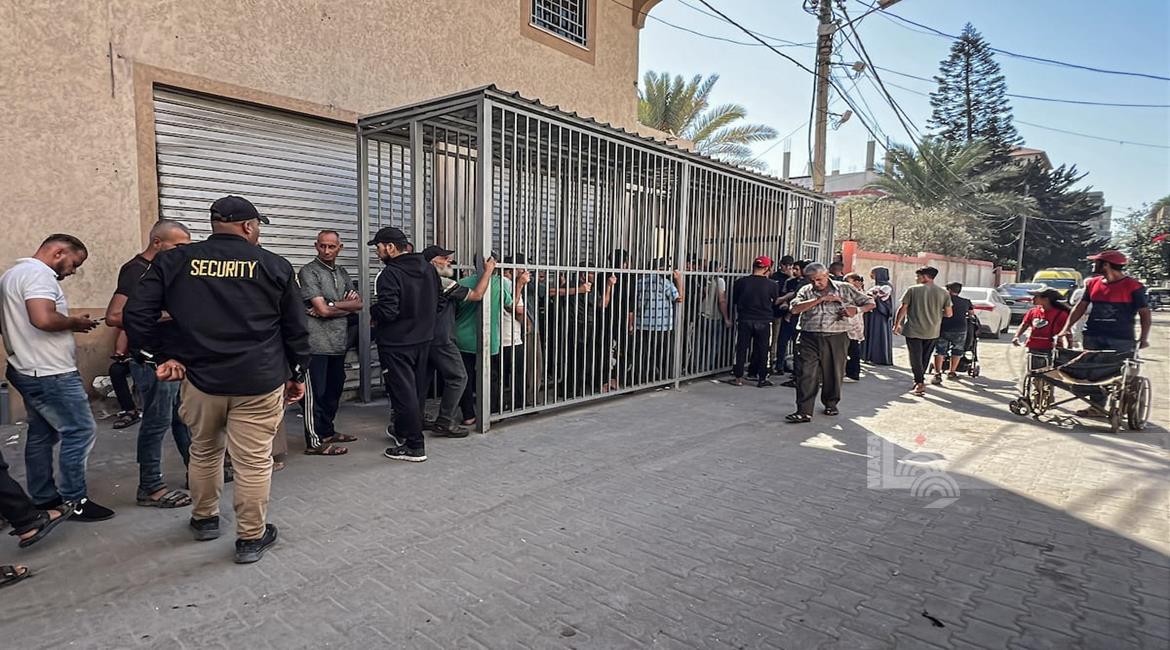 غزة - مواطنون يقفون في طوابير أمام فرع لأحد البنوك في ظل أزمة السيولة ونقص العملة في قطاع غزة