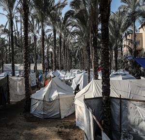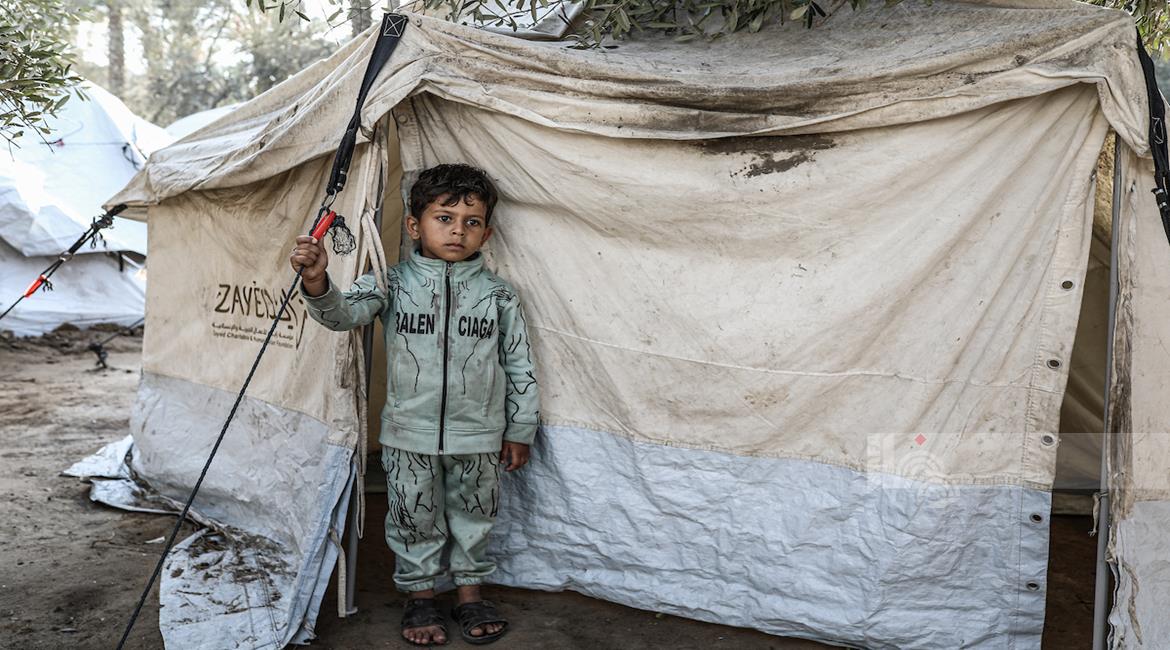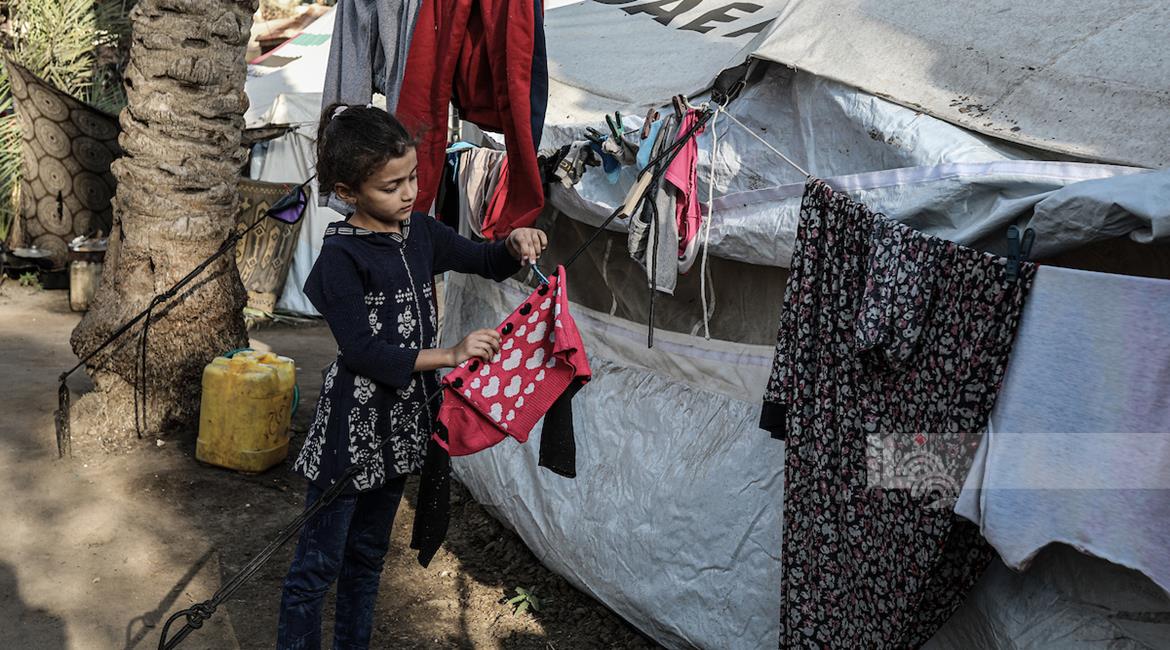 غزة - نازحون يواجهون ظروفًا إنسانية قاسية حيث أدت الأمطار الغزيرة والرياح القوية إلى إتلاف الخيام في دير البلح وسط قطاع غزة