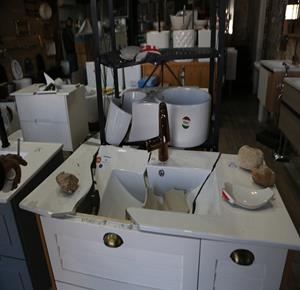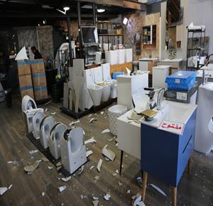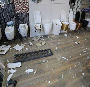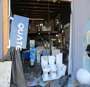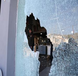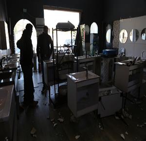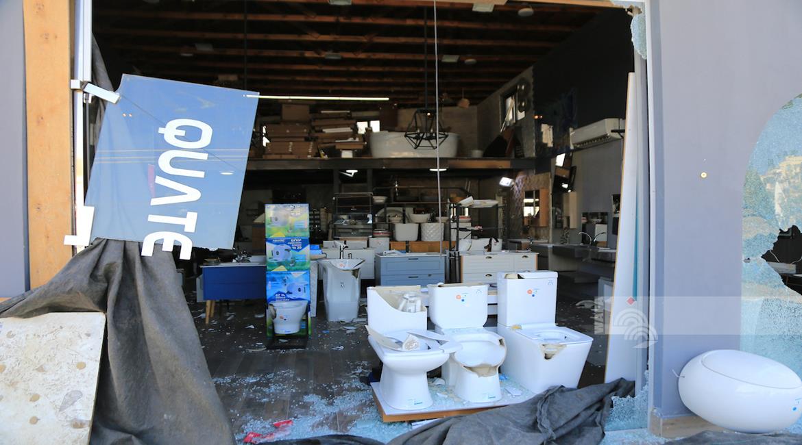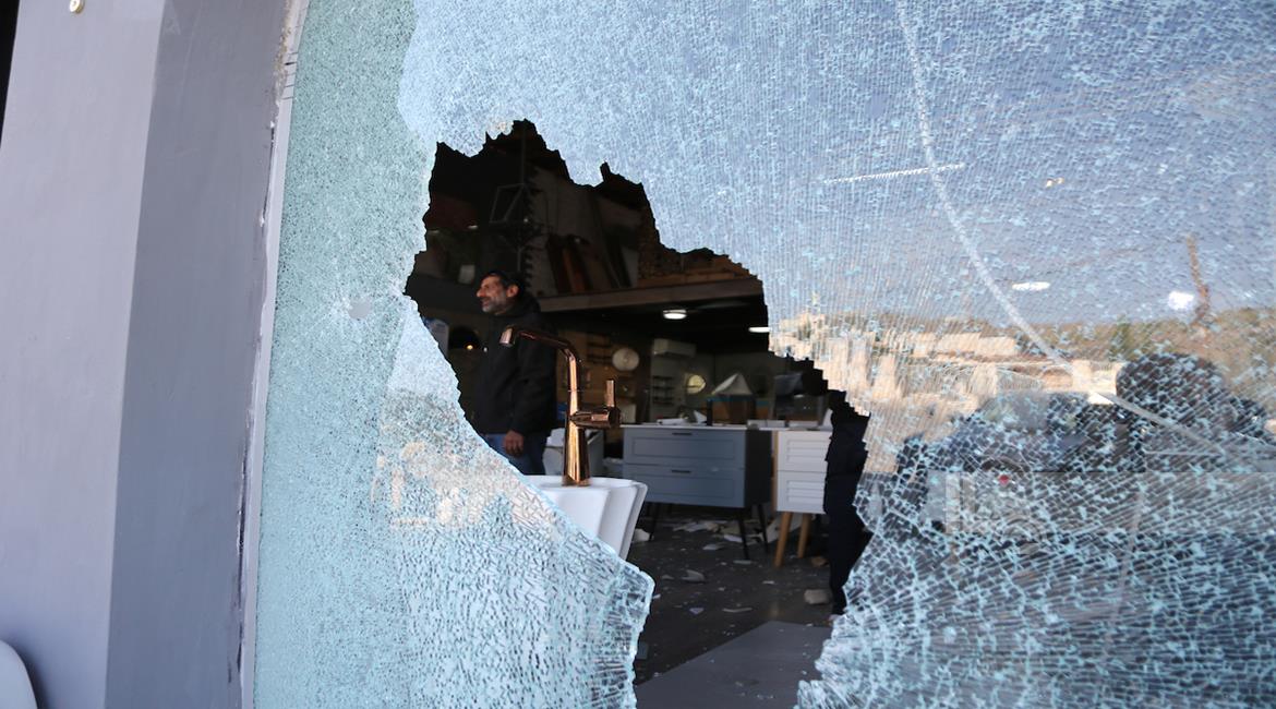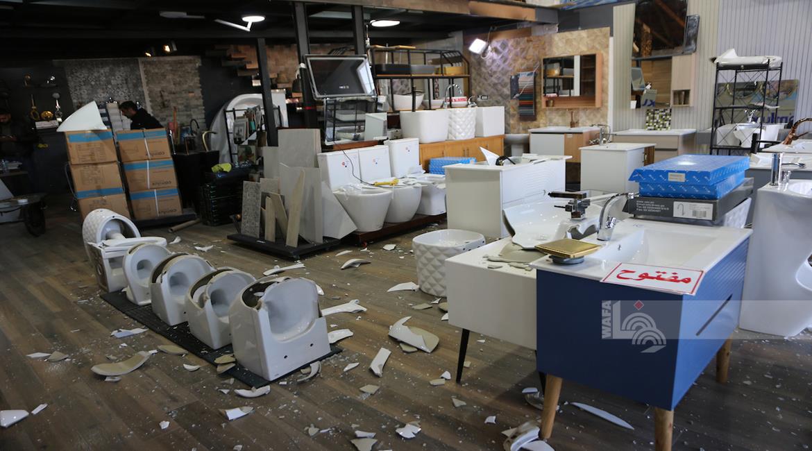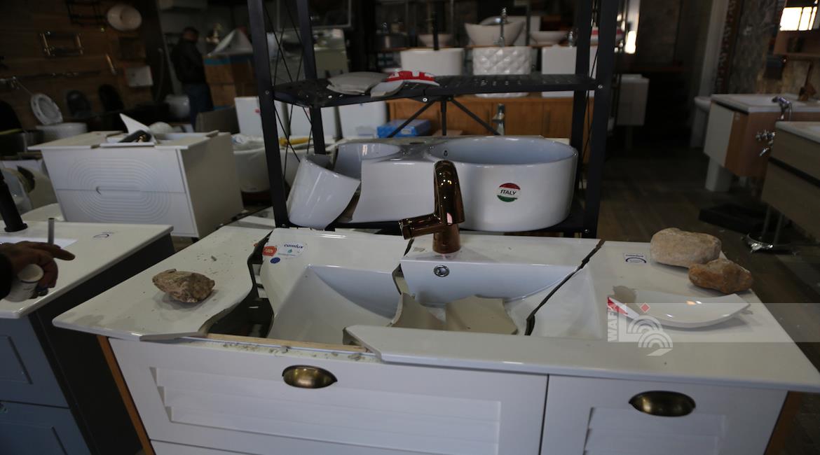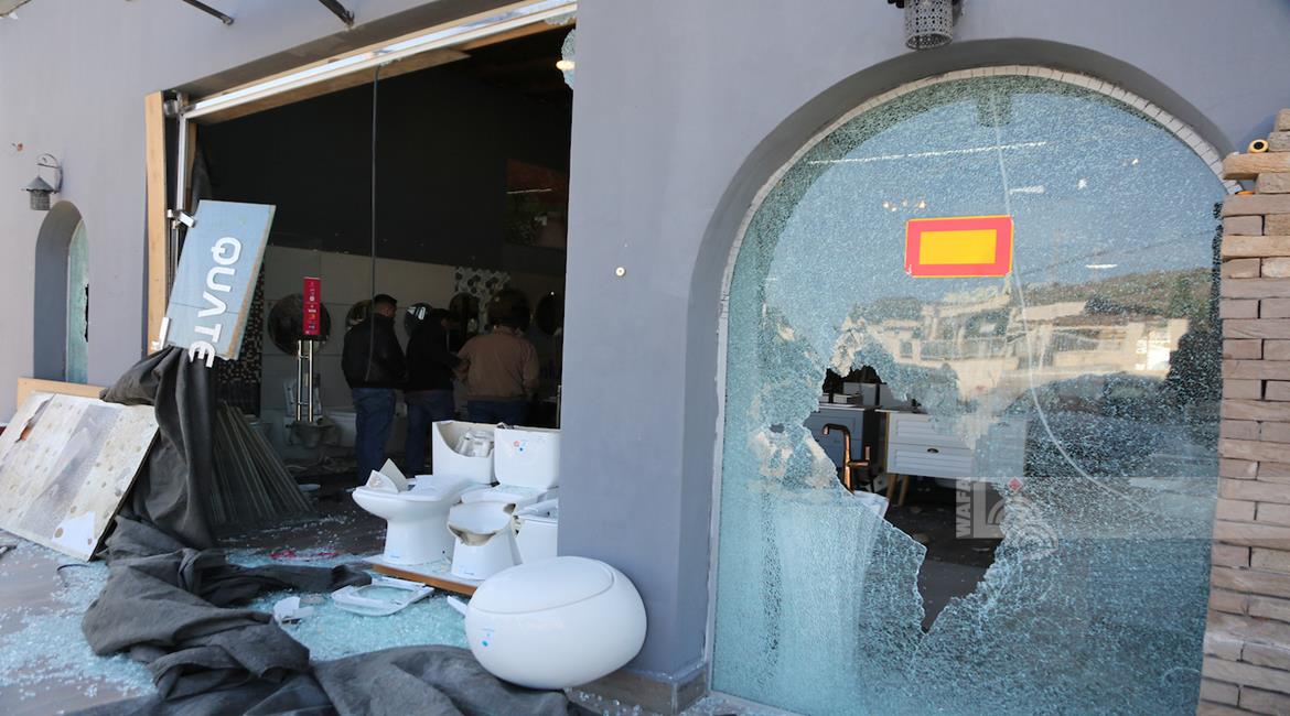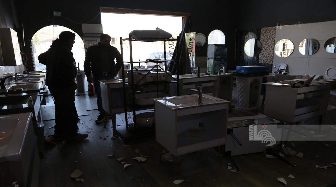 نابلس - مواطنون يتفقدون أحد المحال التجارية بعد ان قامت مجموعة من المستعمرين بمهاجمته وتخريبه في قرية دير شرف غرب مدينة نابلس