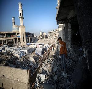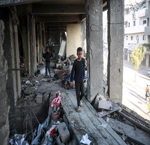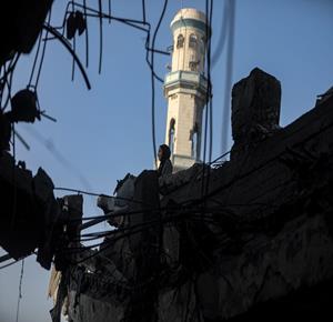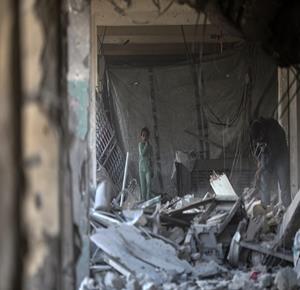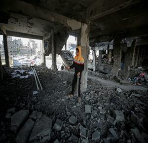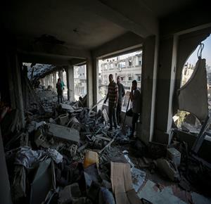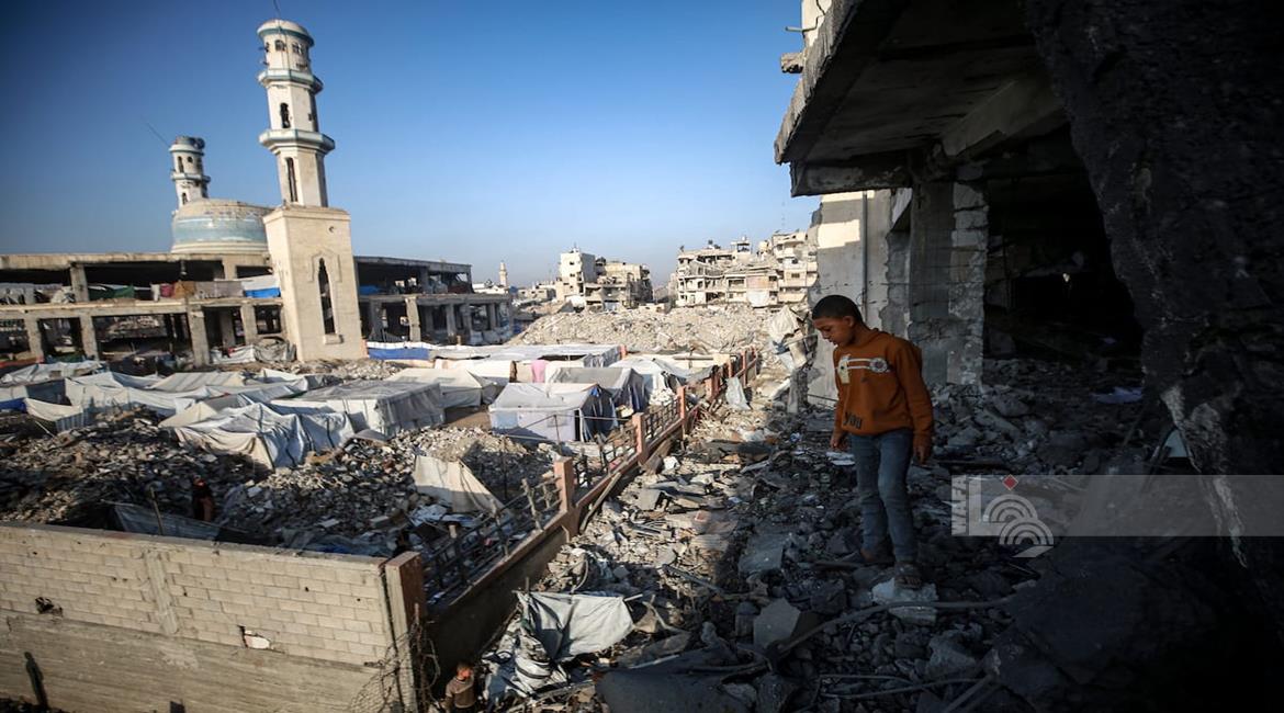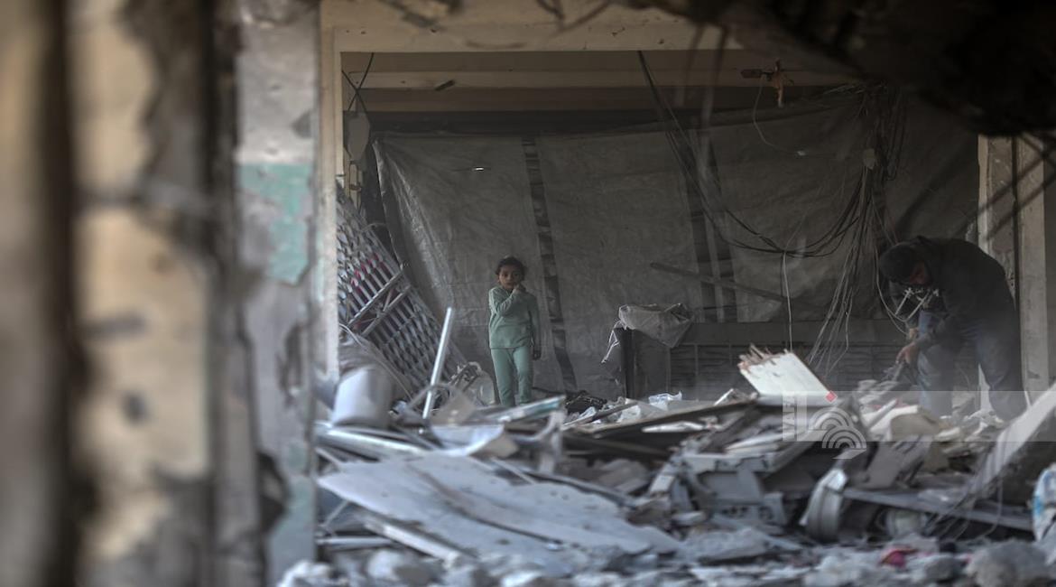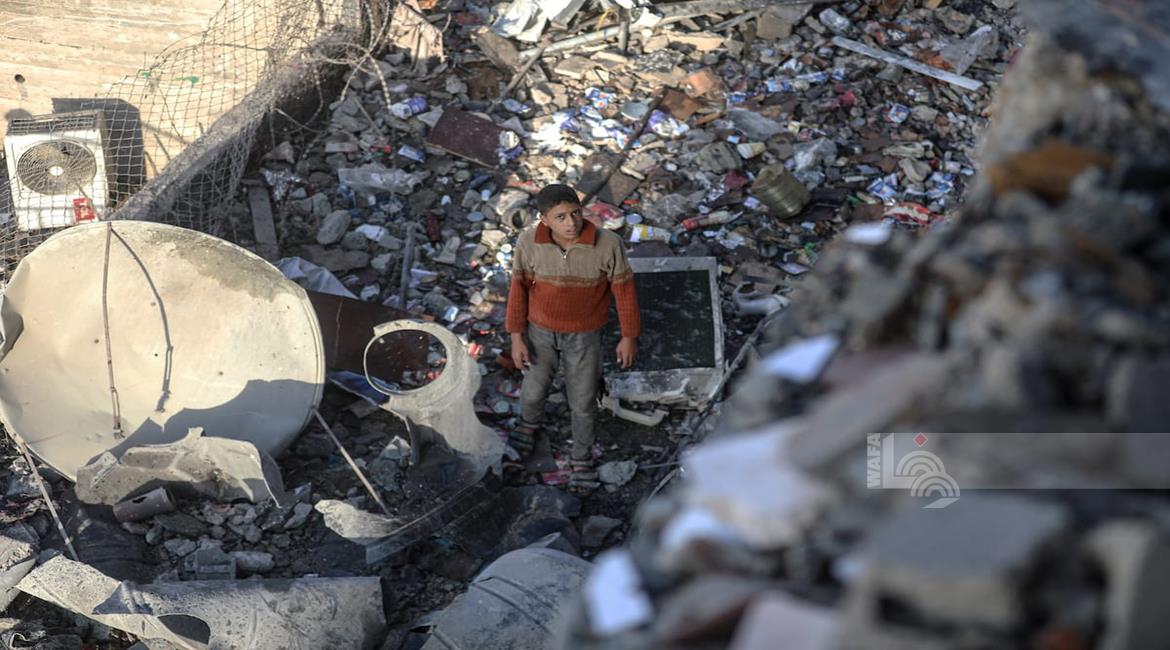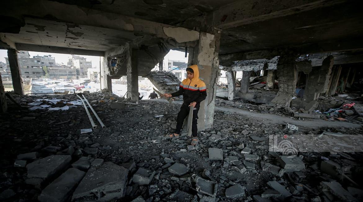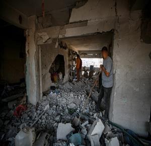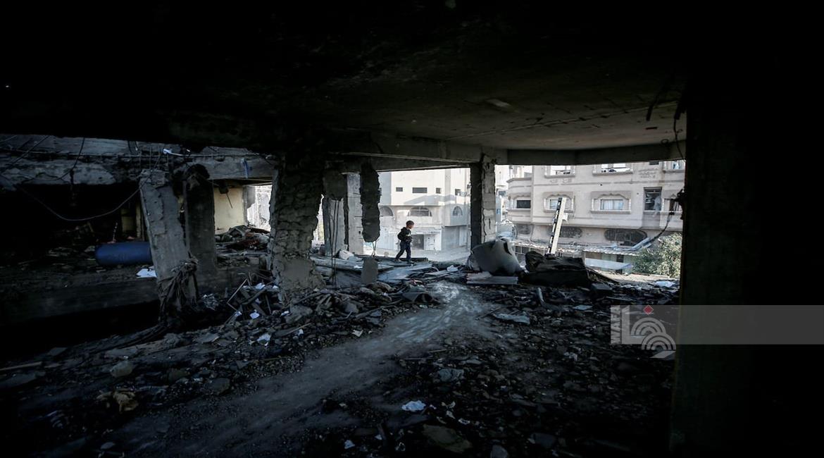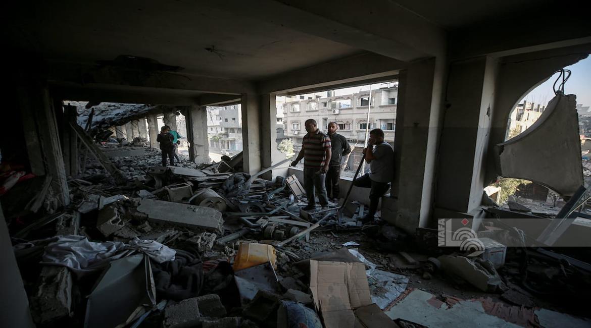 غزة - مواطنون يتفقدون الدمار بعد عدة غارات جوية اسرائيلية استهدفت مناطق متفرقة من مدينة غزة.