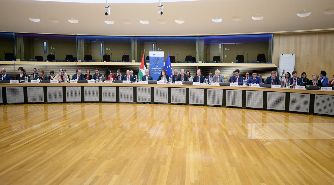 رئيس الوزراء محمد مصطفى أثناء القاء كلمته في فعالية "فلسطين أونلاين" المنظمة من الاتحاد الأوروبي