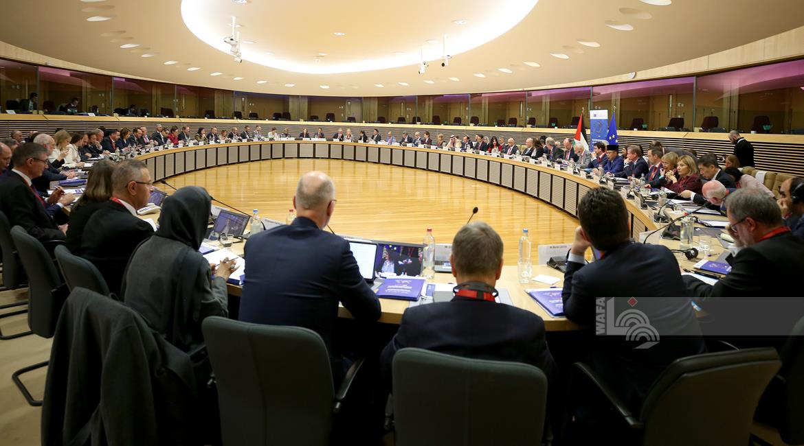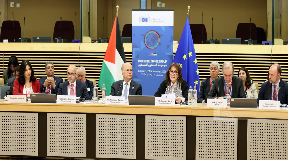 بروكسل - رئيس الوزراء محمد مصطفى، خلال القاء كلمته في اجتماع لمجموعة الدول المانحة والشركاء الدوليين