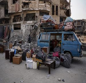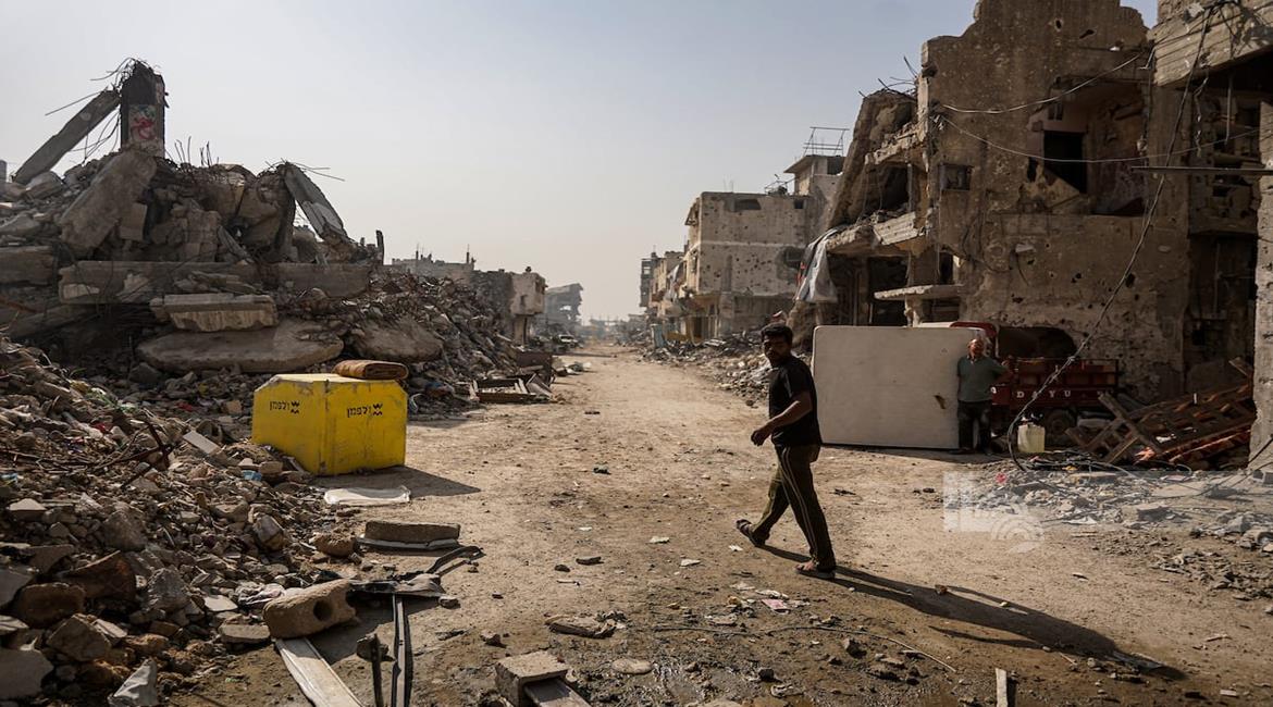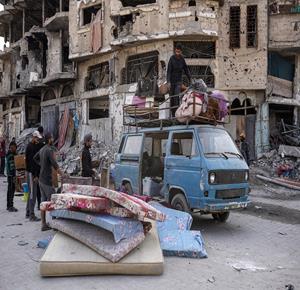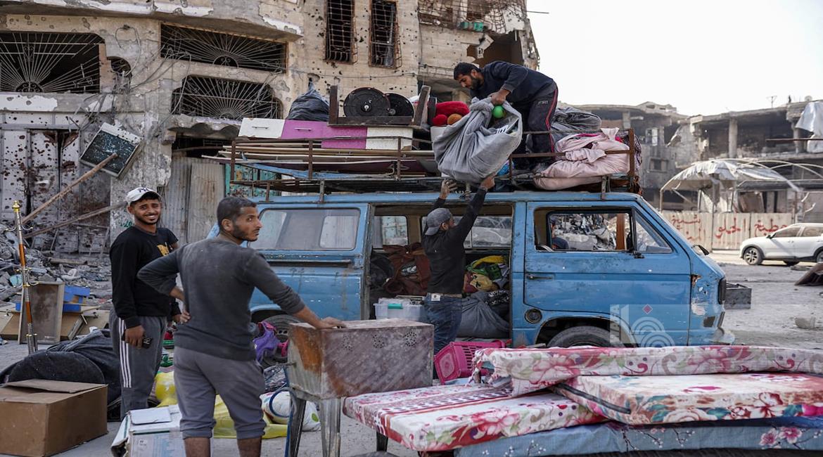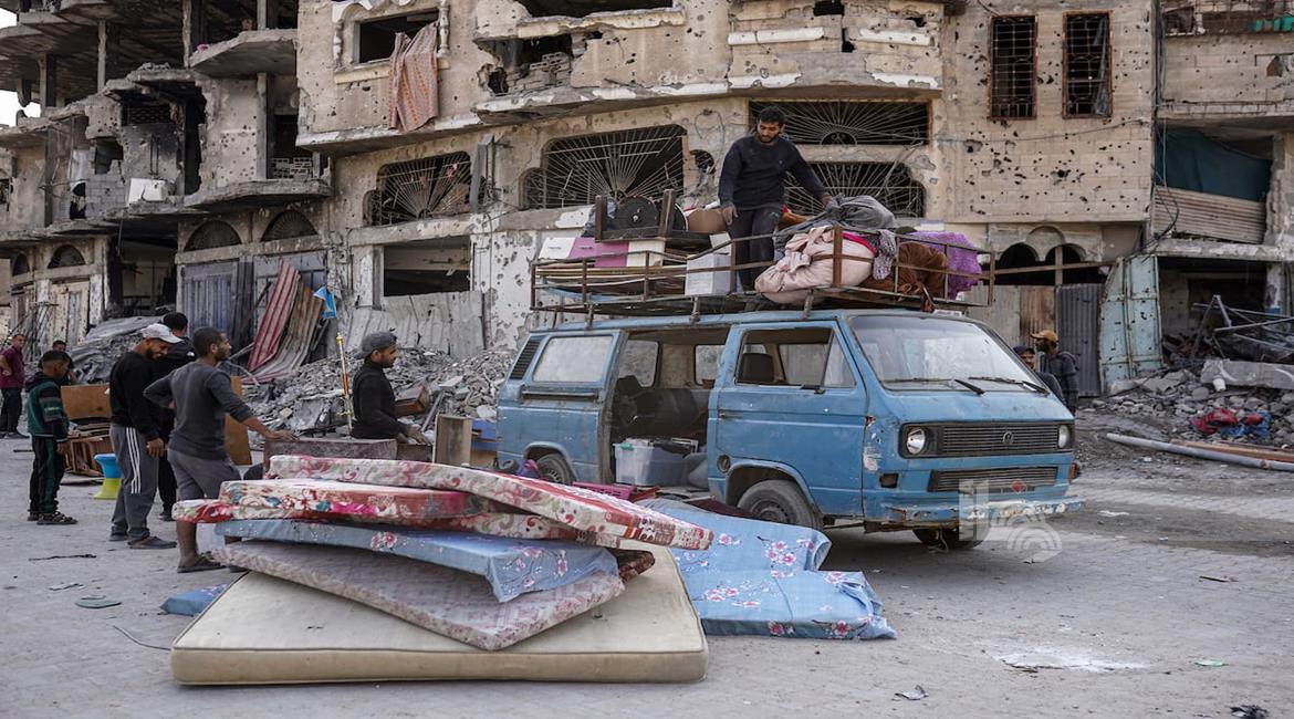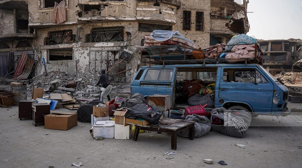 غزة - مواطنون ينزحون بحثا عن الأمان بعد أن وسعت قوات الاحتلال الإسرائيلية المنطقة التي تسيطر عليها في غزة المعروفة باسم "الخط الاصفر"