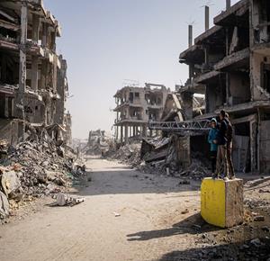 مواطنون يتفقدون الدمار بعد عدة غارات جوية اسرائيلية استهدفت مناطق متفرقة من مدينة غزة.