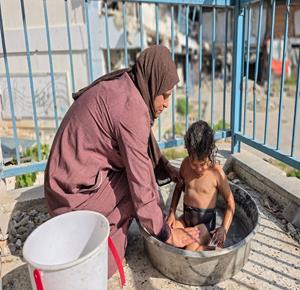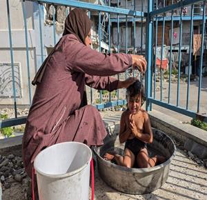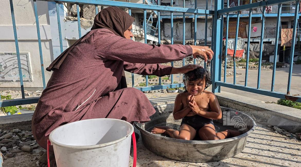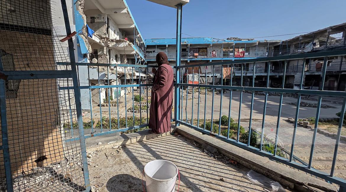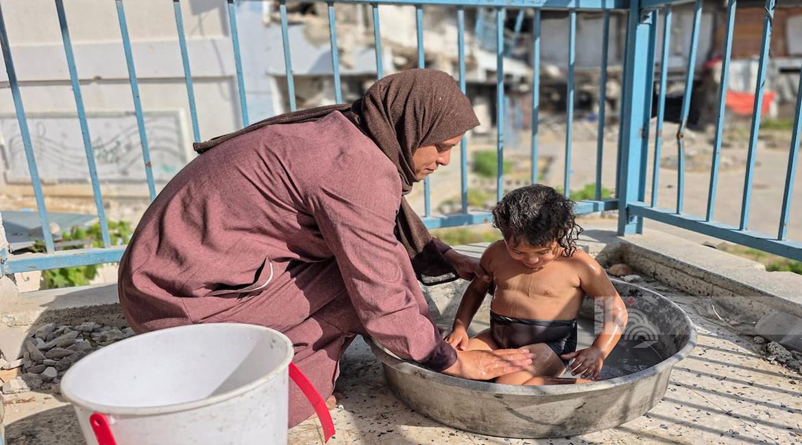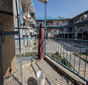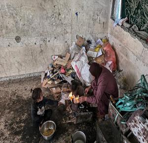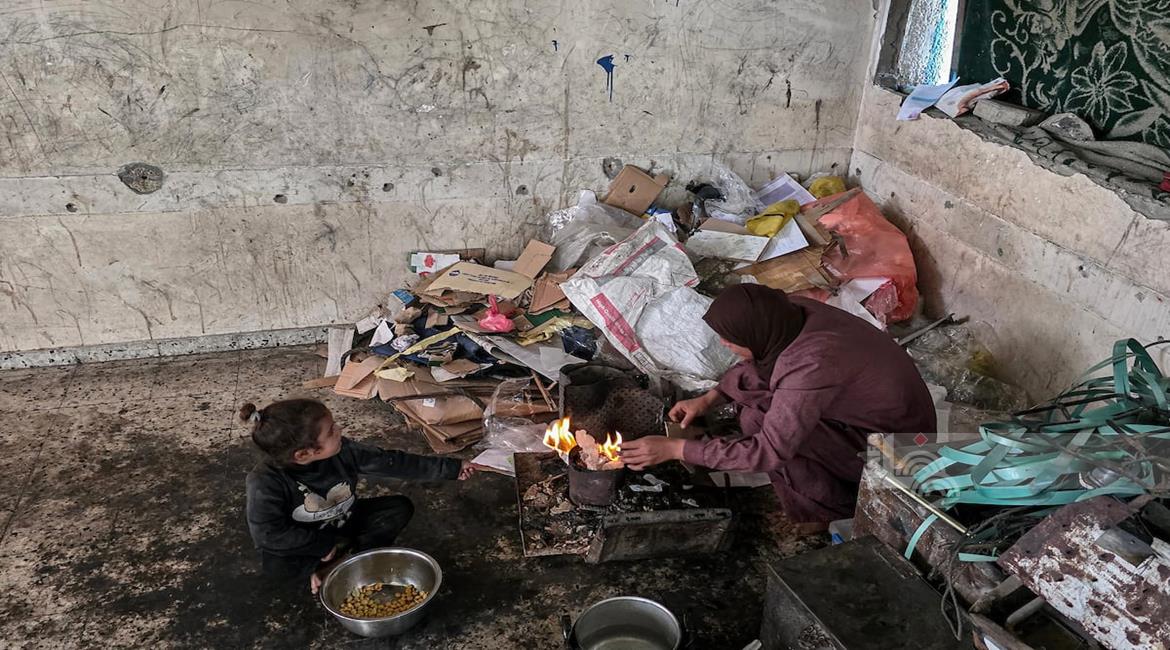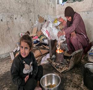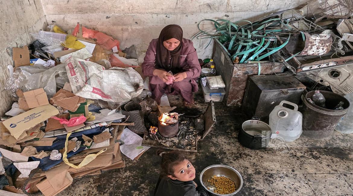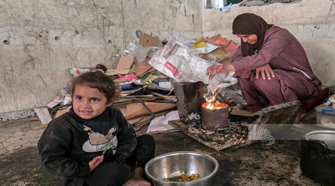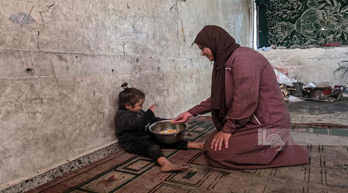 غزة - النازحة صابرين أبو عاصي تعاني وأطفالها ظروفاً قاسية في بني سهيلا بخان يونس جنوب قطاع غزة