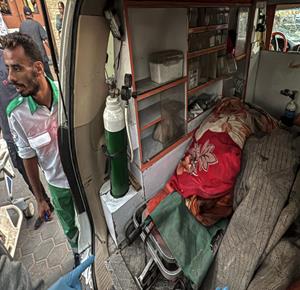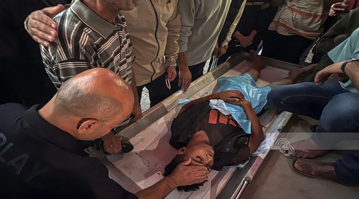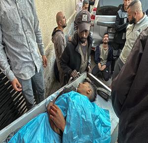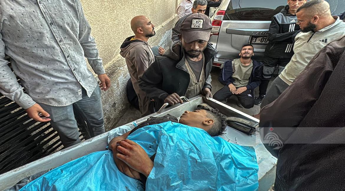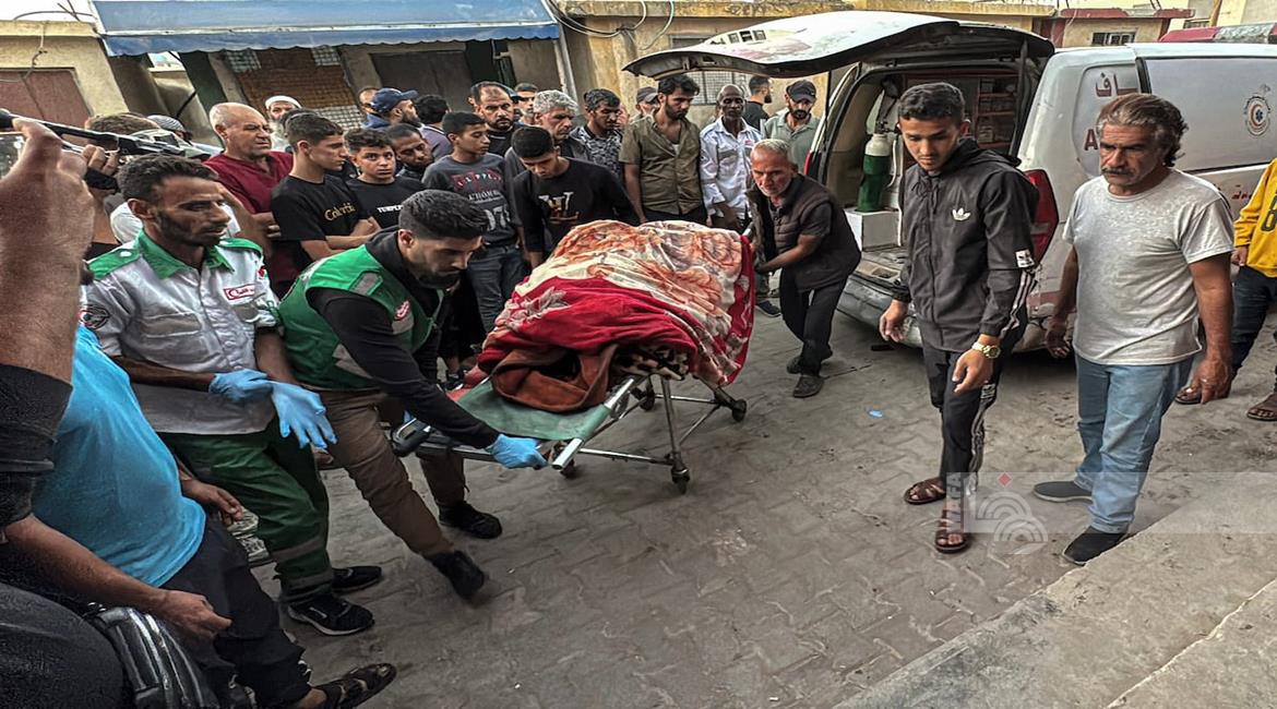 غزة - مواطنون ينقلون شهداء و جرحى إلى مستشفى شهداء الاقصى بعد غارات إسرائيلية استهدفت منازل متفرقة في دير البلح وسط قطاع غزة