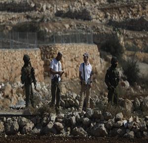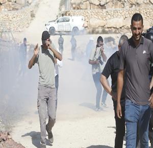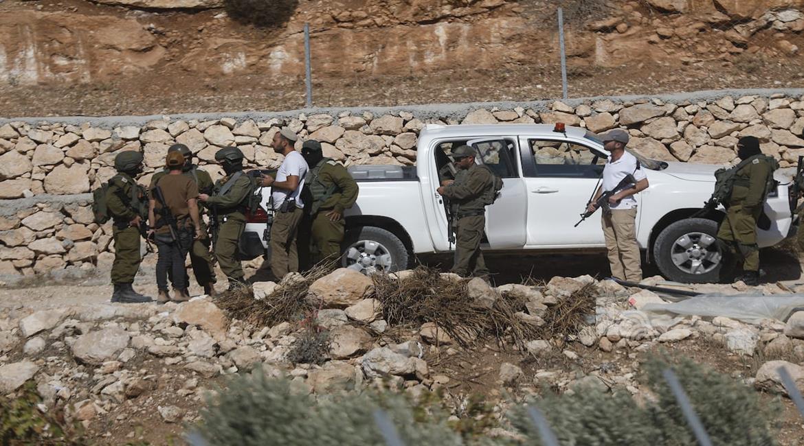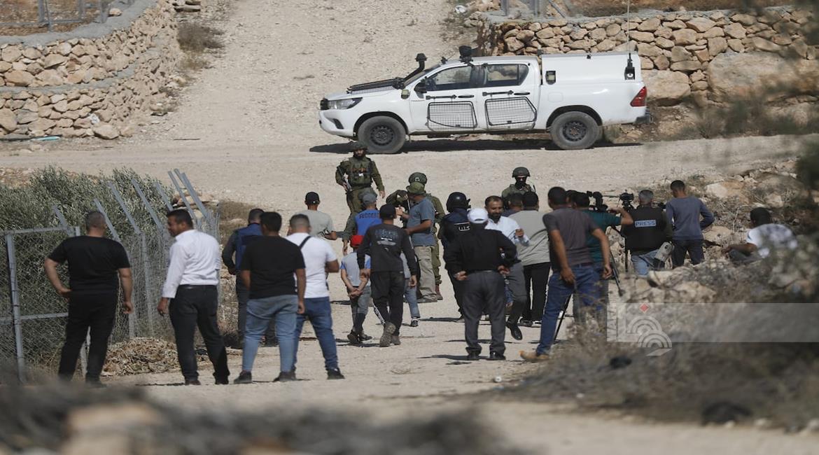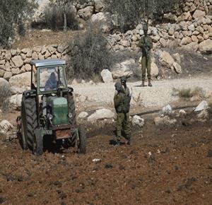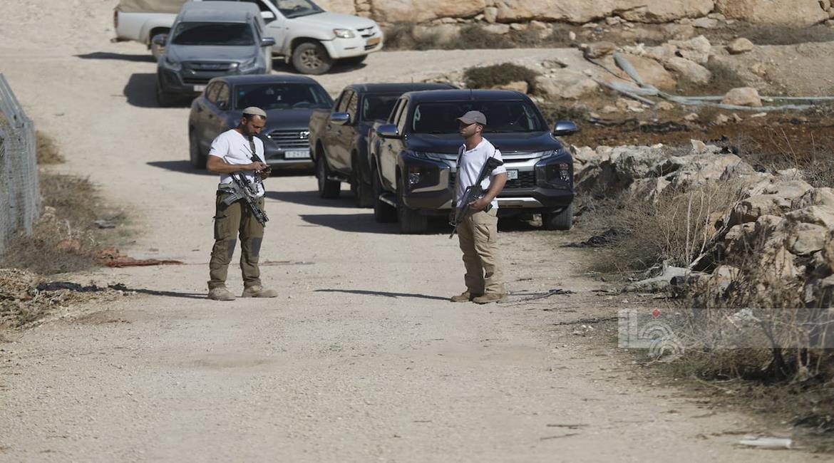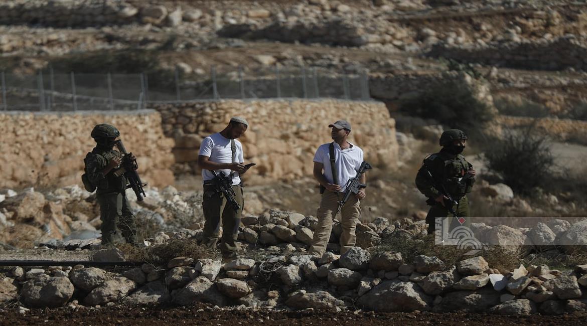 الخليل - قوات الاحتلال ومستعمروه يمنعون المزارعين من حراثة أراضيهم المهددة بالمصادرة في بلدة بيت أولا غرب الخليل