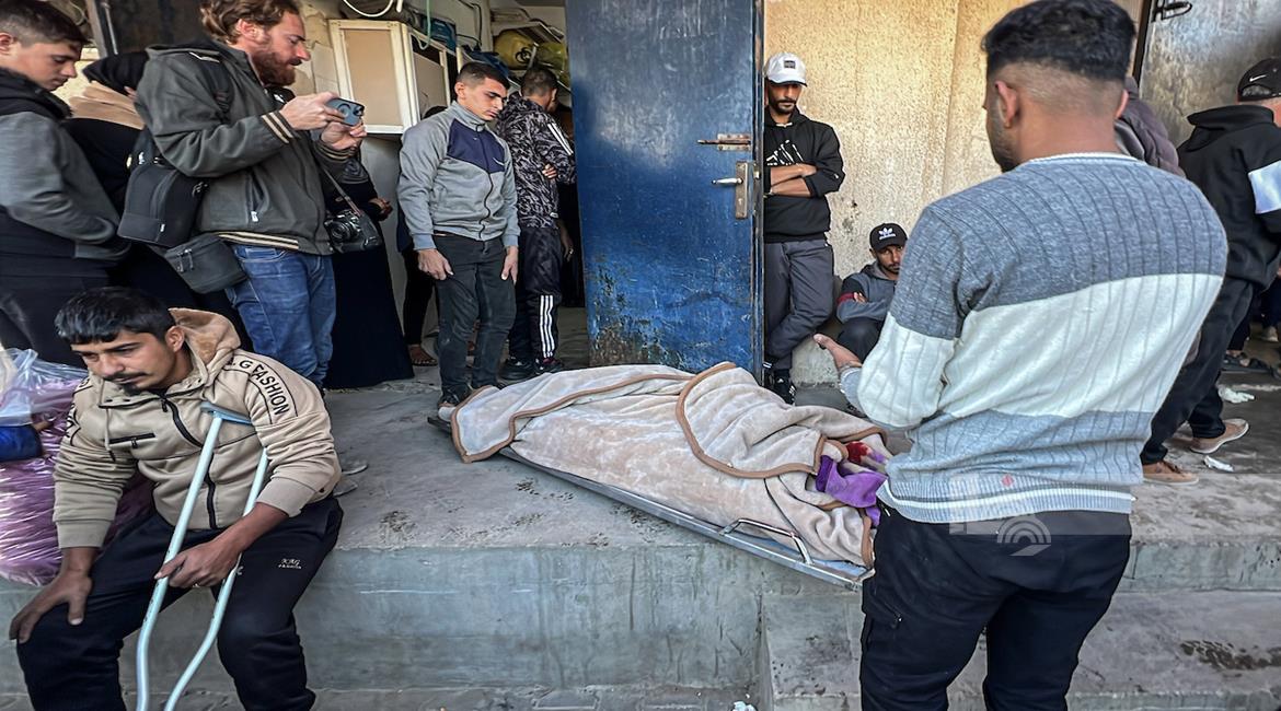 وداع وتشييع عدد من الشهداء في مستشفى الشفاء بمدينة غزة