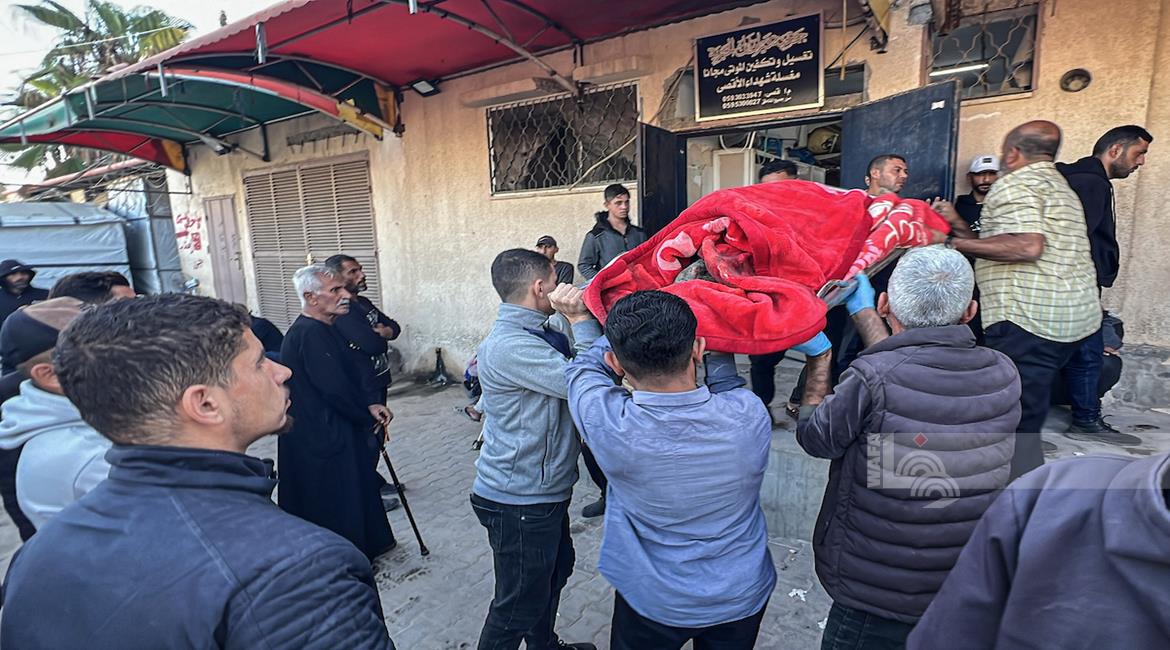 مواطنون ينقلون شهداء و جرحى إلى مستشفى شهداء الاقصى بعد غارات إسرائيلية استهدفت منازل متفرقة في دير البلح وسط قطاع غزة