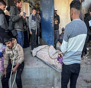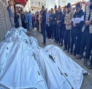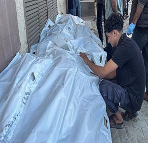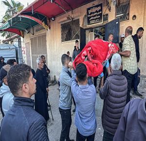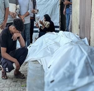 غزة - وداع وتشييع عدد من الشهداء في مستشفى شهداء الأقصى بدير البلح وسط قطاع غزة