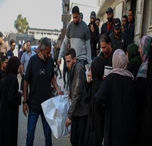 وداع وتشييع عدد من الشهداء في مستشفى شهداء الأقصى بدير البلح وسط قطاع غزة