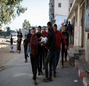 مواطنون يخلون ضحايا من منزل تعرض للقصف في مدينة غزة