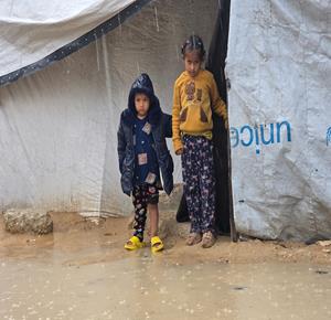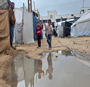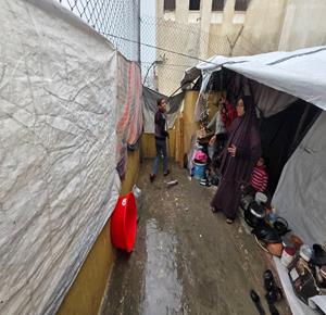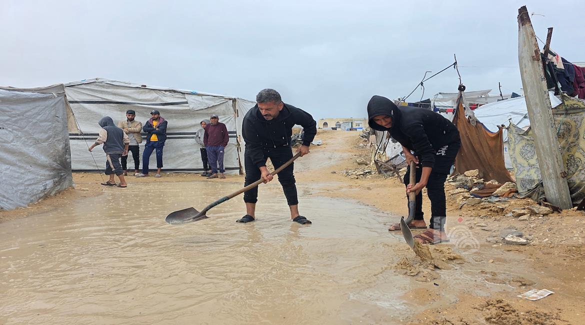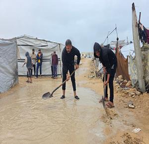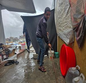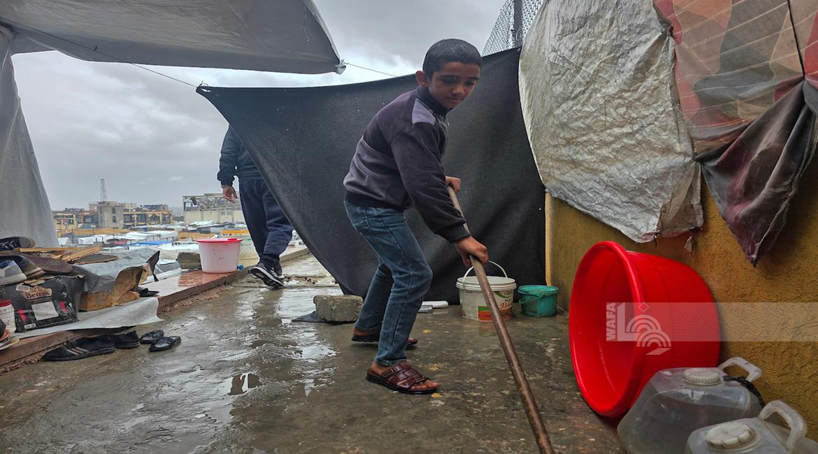 غزة - أوضاع معيشية تزداد قسوة على النازحين مع المنخفض الجوي في خان يونس