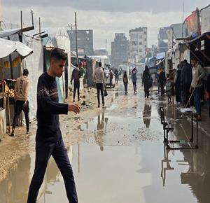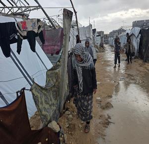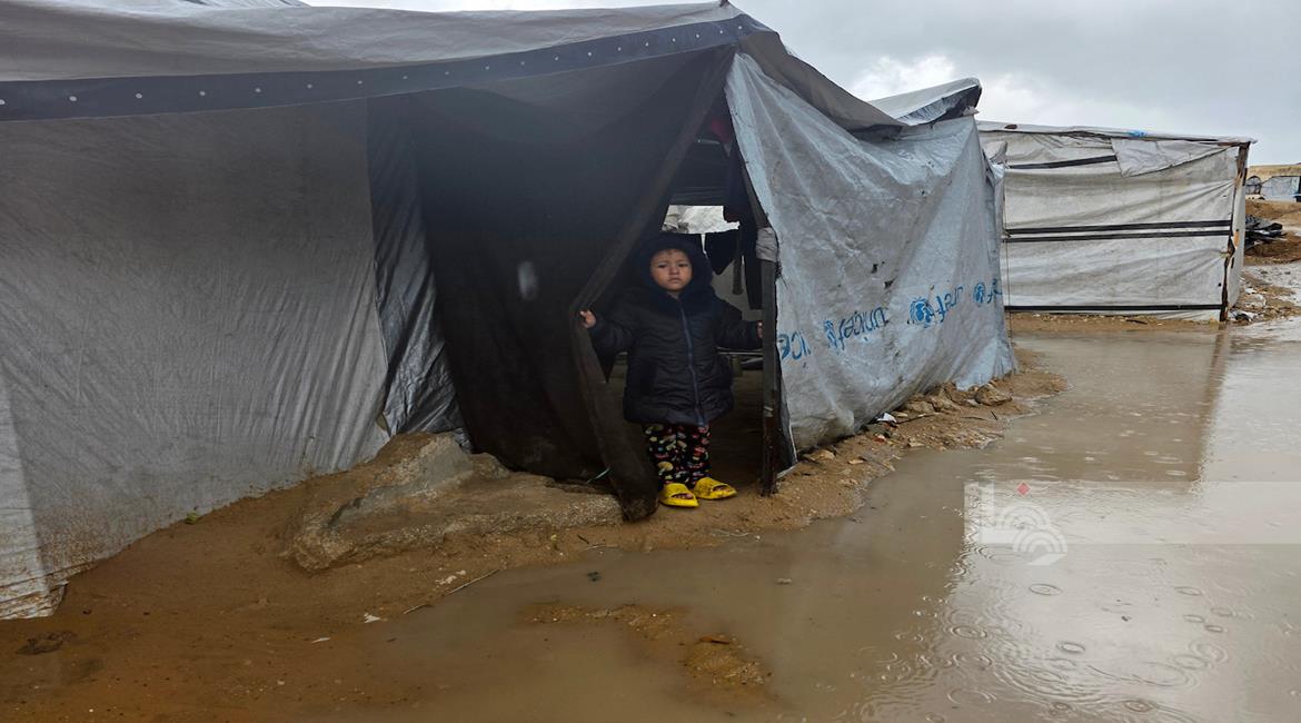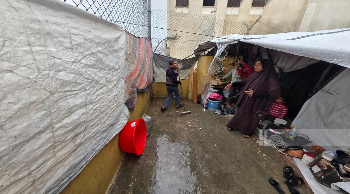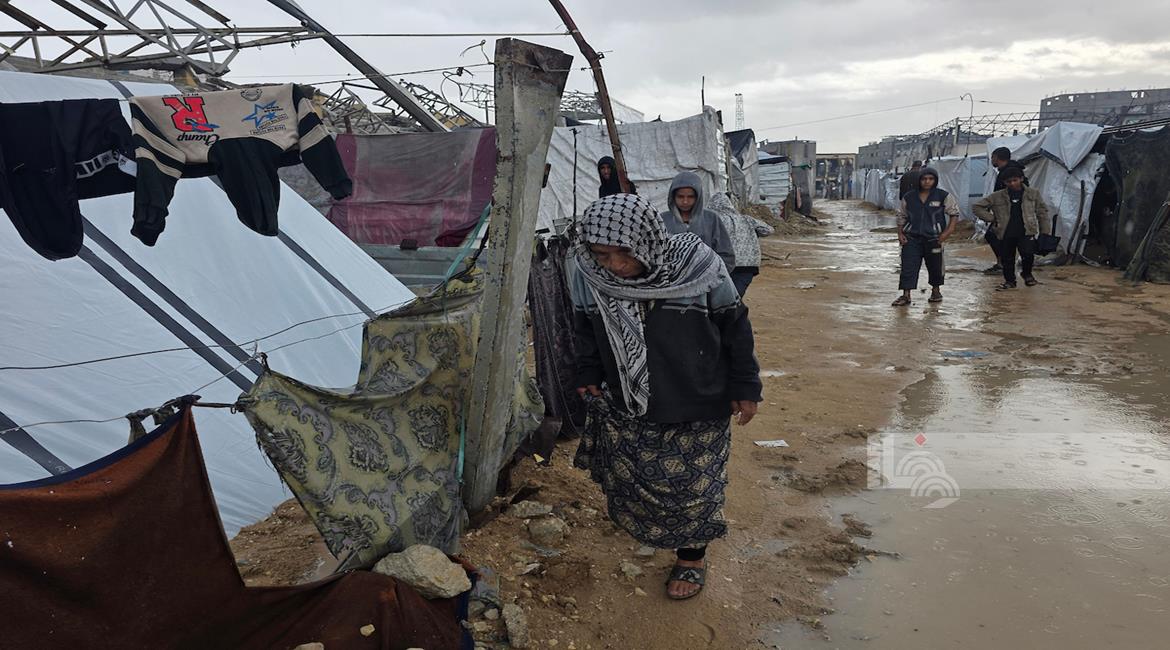 ظروف قاسية يعيشها النازحون في ظل المنخفض الجوي في مدينة غزة