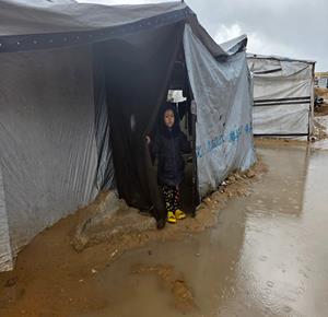 مياه الأمطار تغرق خيام النازحين في النصيرات