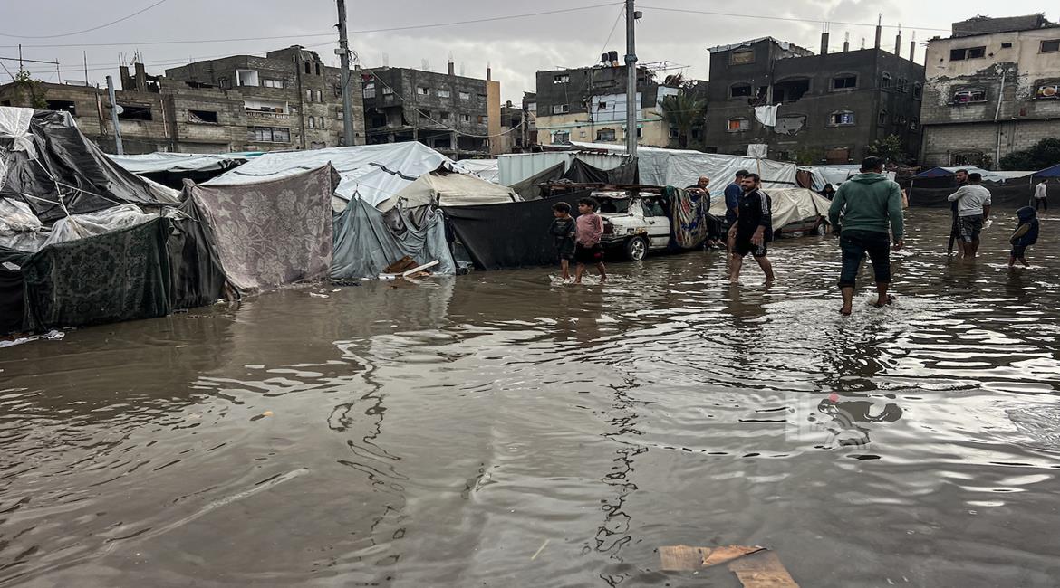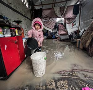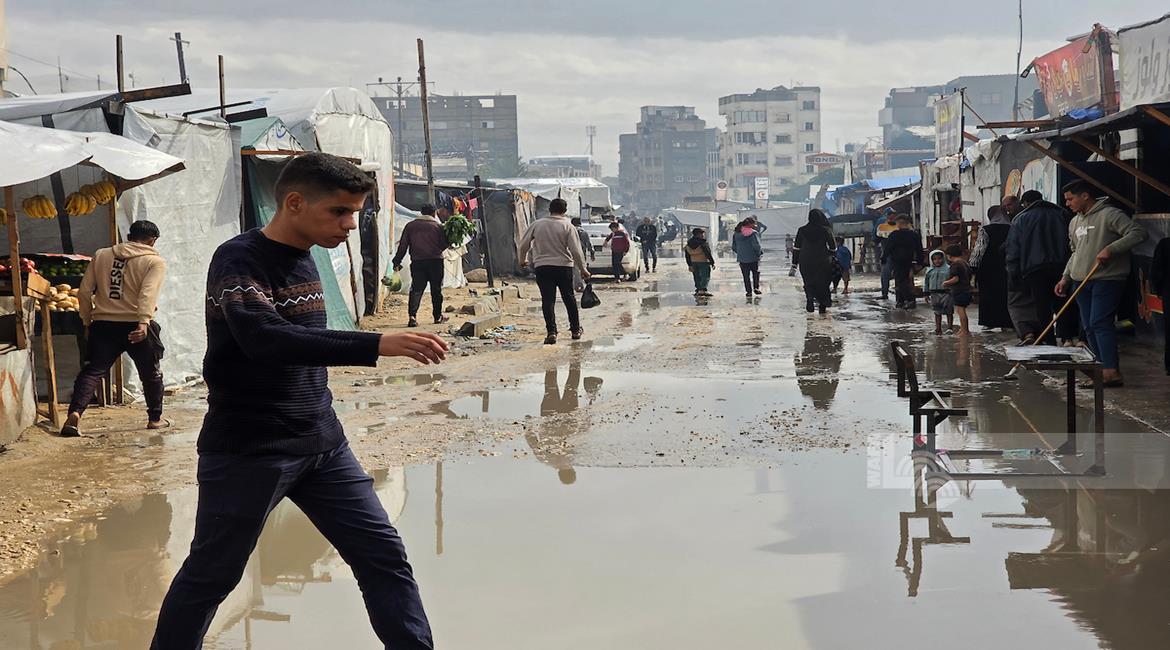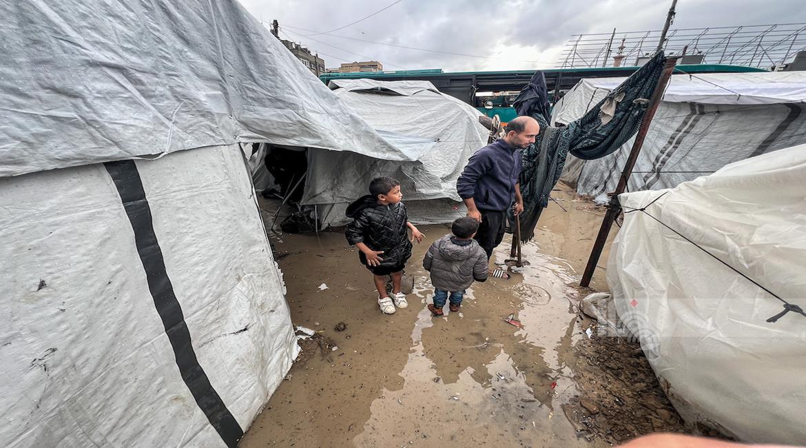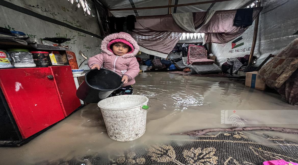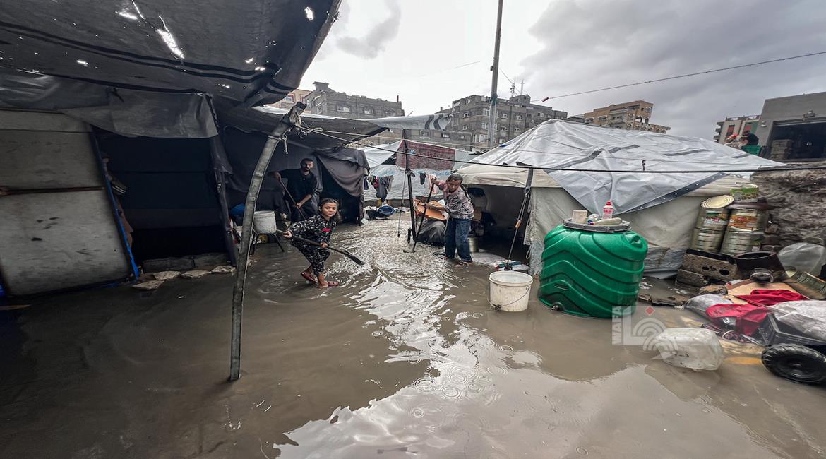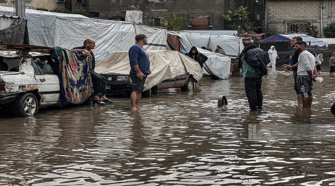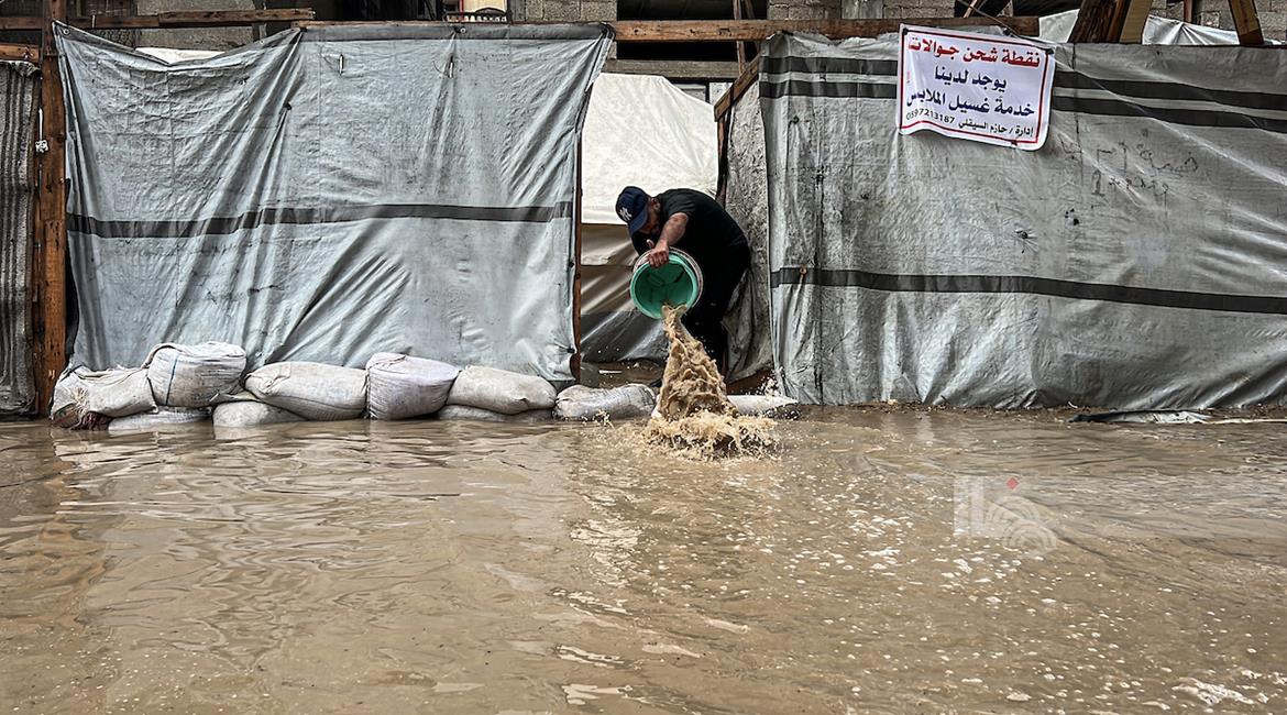 ظروف قاسية يعيشها النازحون في ظل المنخفض الجوي في مدينة غزة