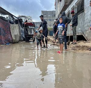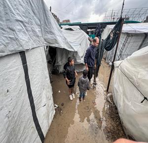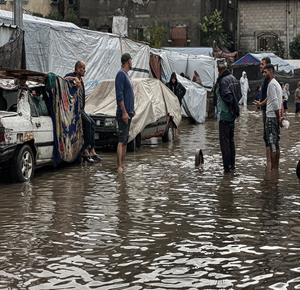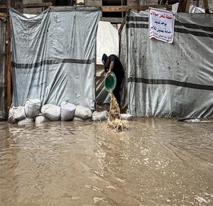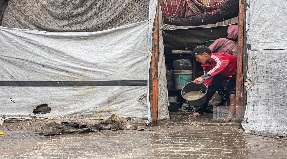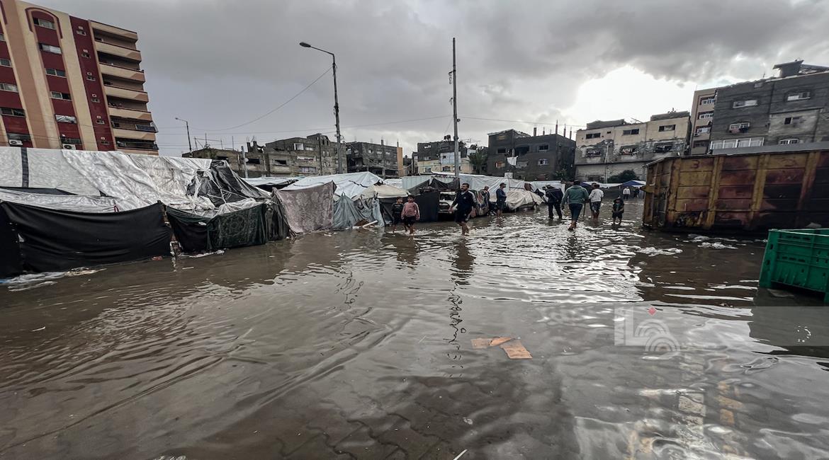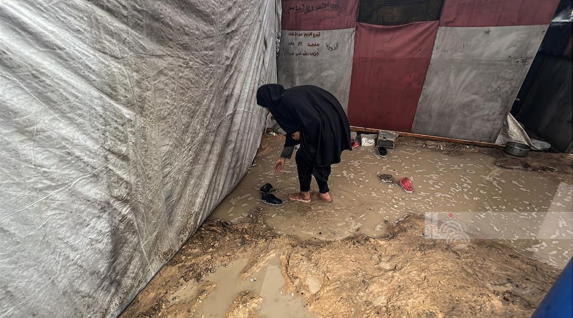 أوضاع معيشية تزداد قسوة على النازحين مع المنخفض الجوي في خان يونس