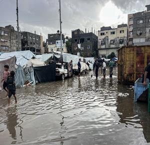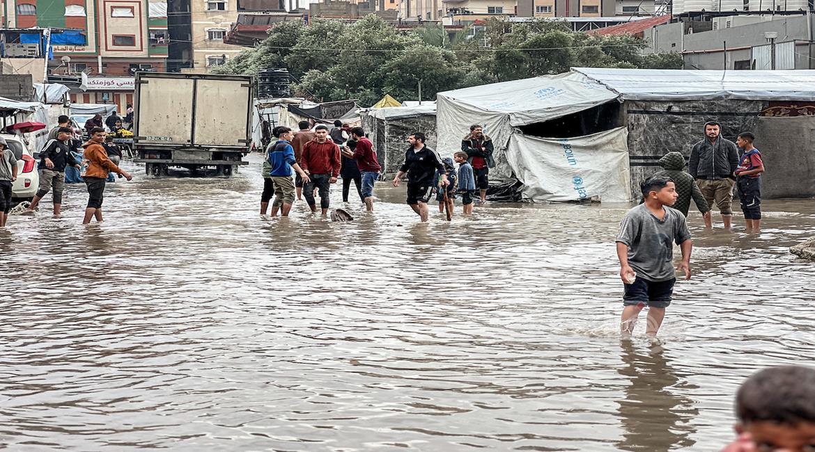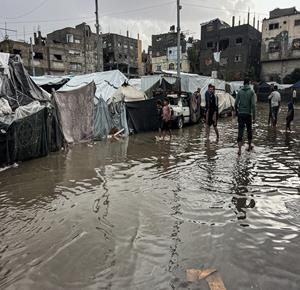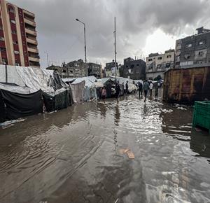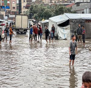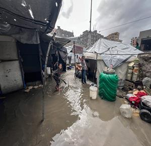 غزة - مياه الأمطار تغرق خيام النازحين في النصيرات