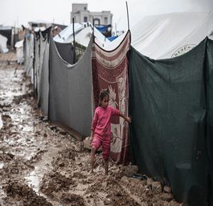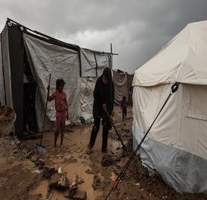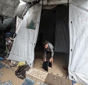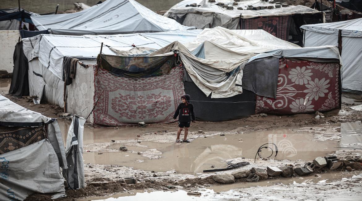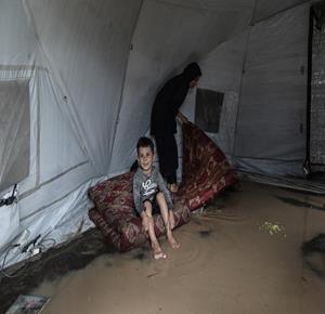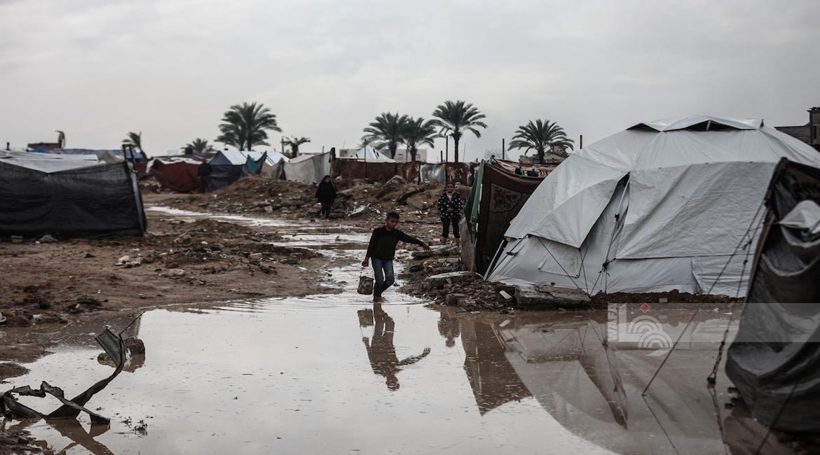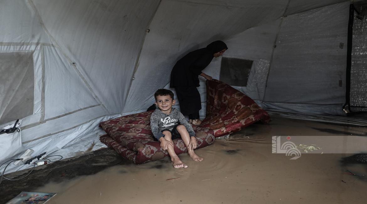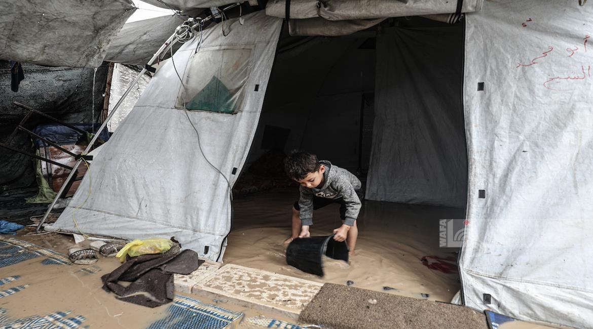 أوضاع معيشية تزداد قسوة على النازحين مع المنخفض الجوي في خان يونس