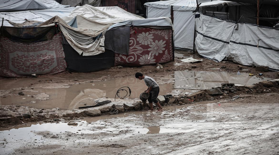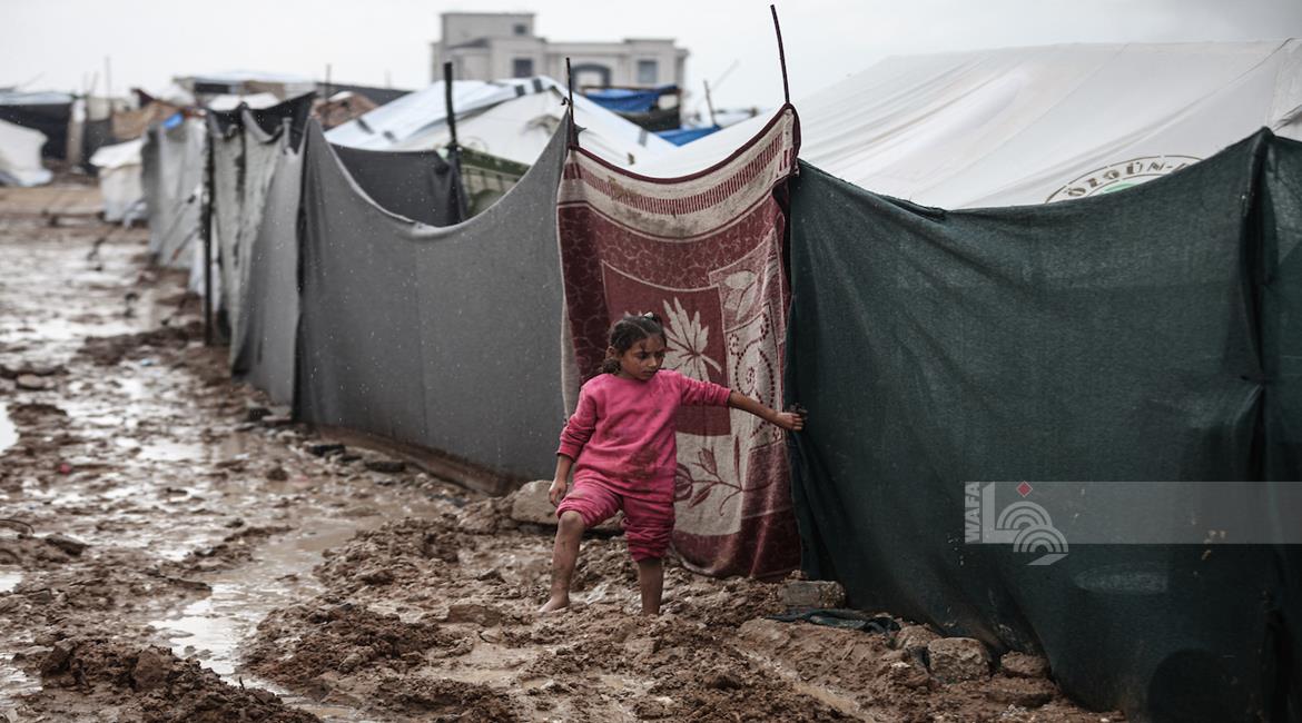 ظروف قاسية يعيشها النازحون في ظل المنخفض الجوي في مدينة غزة
