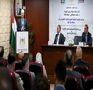 الخليل - برعاية وحضور رئيس الوزراء محمد مصطفى الشركة الفلسطينية لنقل الكهرباء وشركة كهرباء الخليل توقعان اتفاقية التزويد بالتيار الكهربائي من محطة بيت أولا