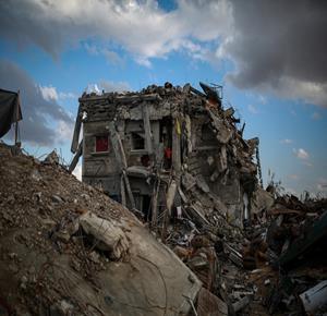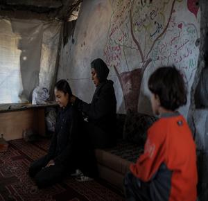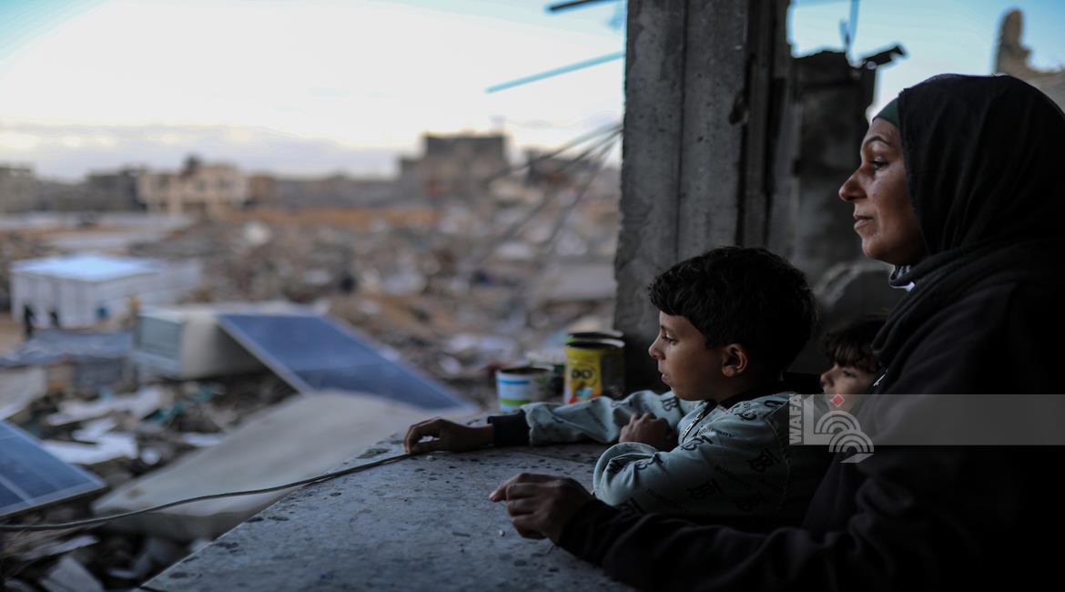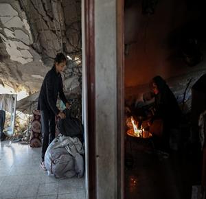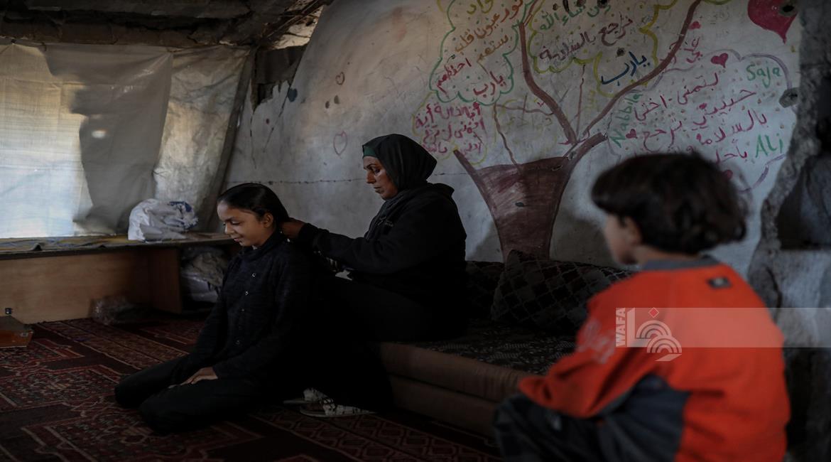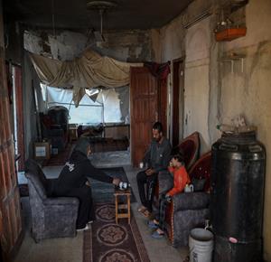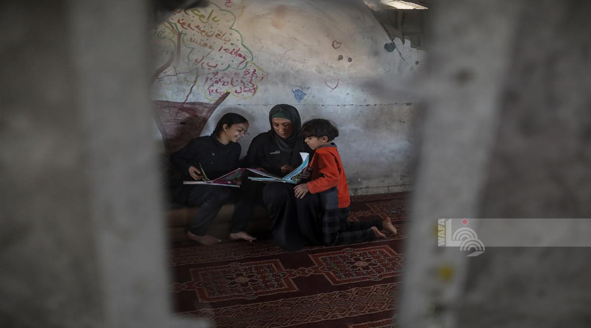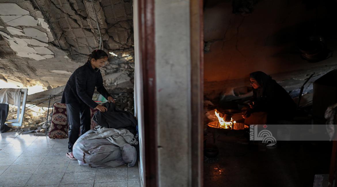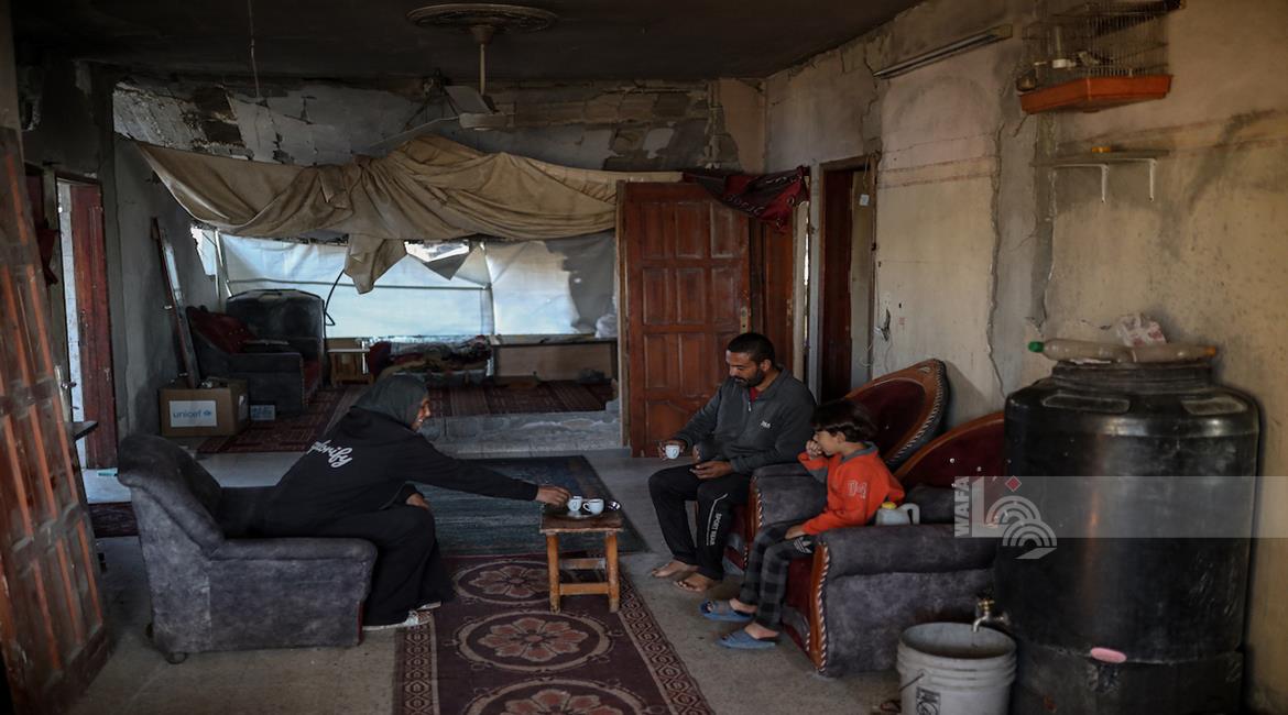 غزة - تواصل عائلة محمد حلاوة حياتها اليومية في منزلها في جباليا شمال قطاع غزة والذي دمر جزئيًا نتيجة للهجمات الإسرائيلية مع عدم وجود مكان آخر للإقامة