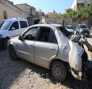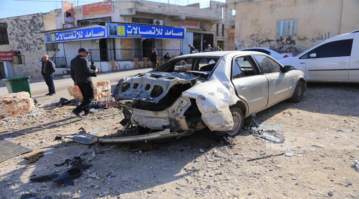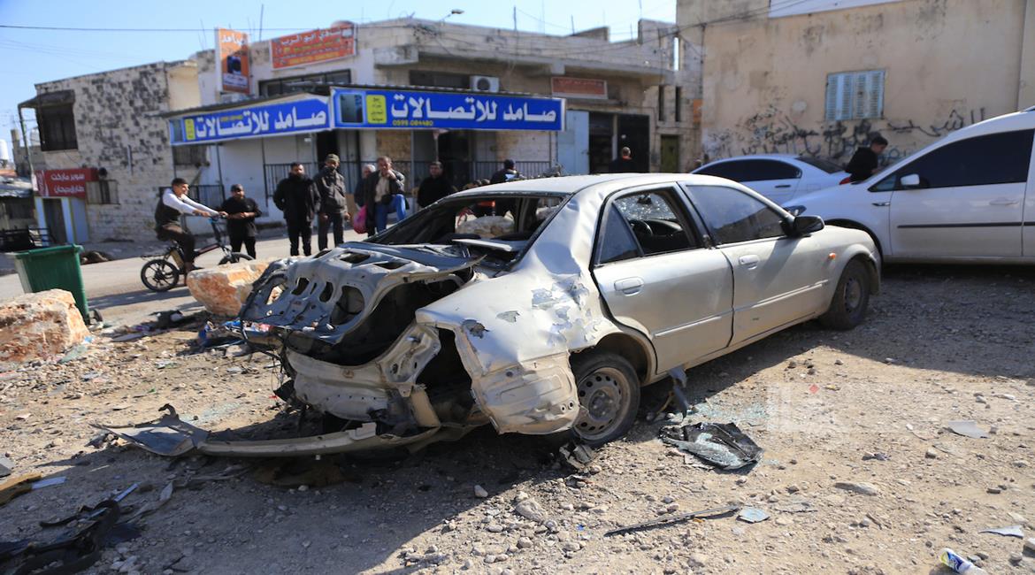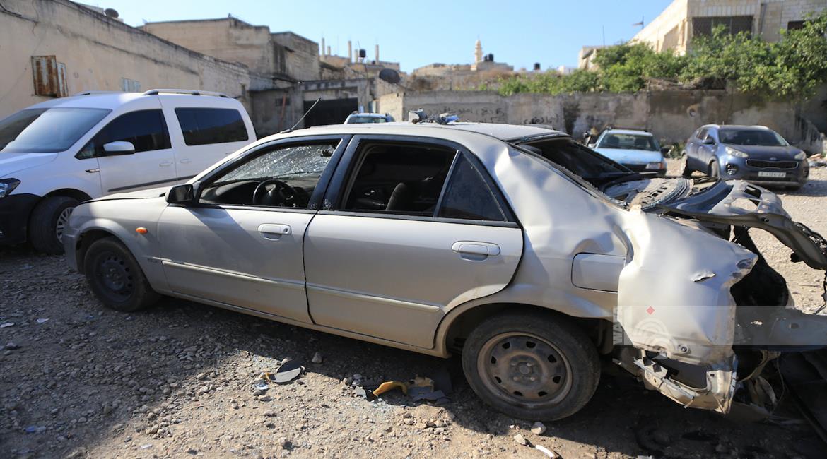 جنين - مواطنون يتفقدون مركبة فجّرها جيش الاحتلال الإسرائيلي خلال عملية عسكرية في بلدة قباطية جنوب جنين