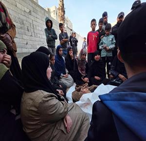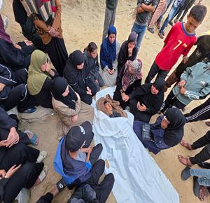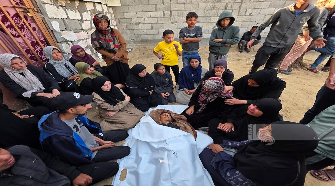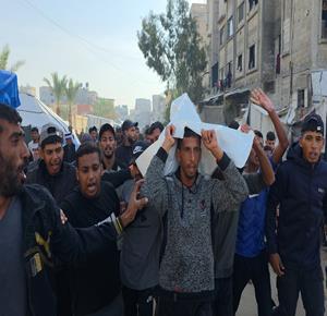 غزة - وداع وتشييع جثمان الشاب عبدالله أبو حماد الذي استشهد بنيران الجيش الإسرائيلي في منطقة بني سهيلا قرب الخط الأصفر شرق خان يونس