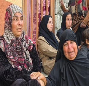 نازحون من مخيم جنين اثناء دخولهم الى المخيم لاخذ بعض مقتنياتهم من منازلهم المهددة بالهدم من قبل قوات الاحتلال الاسرائيلي.