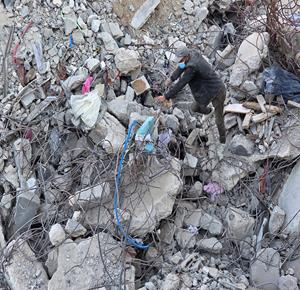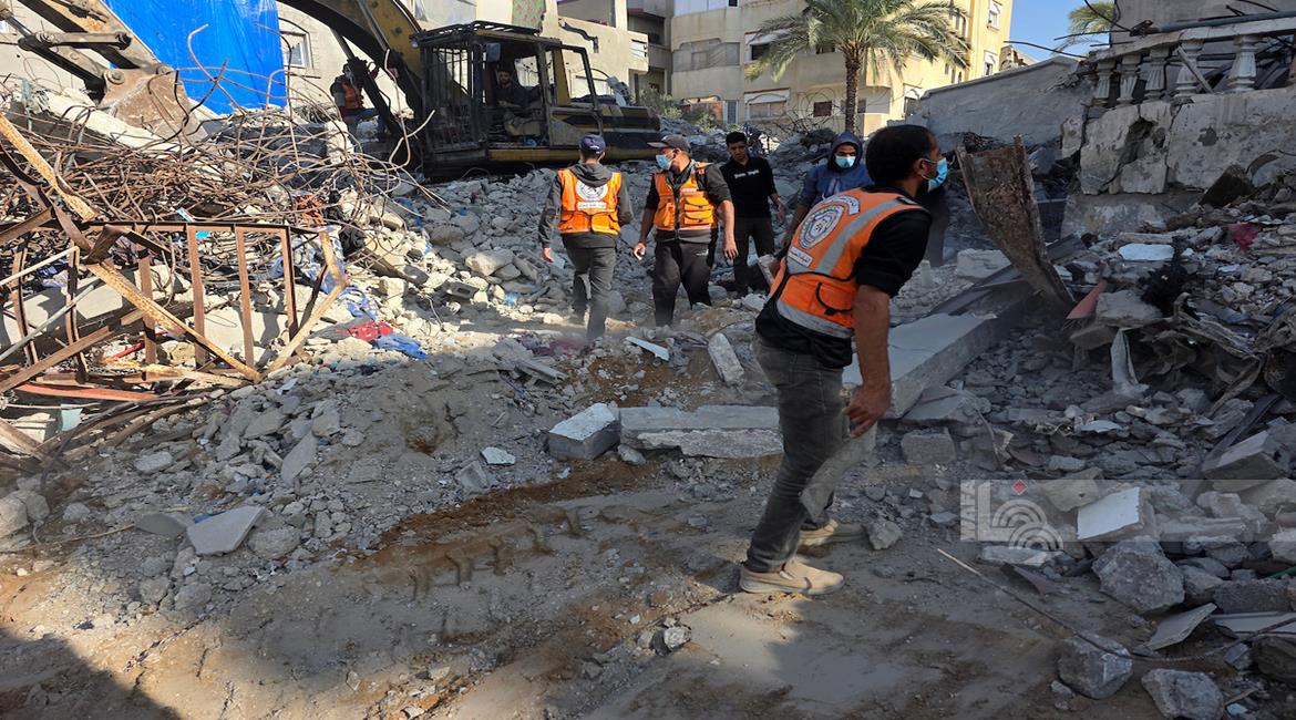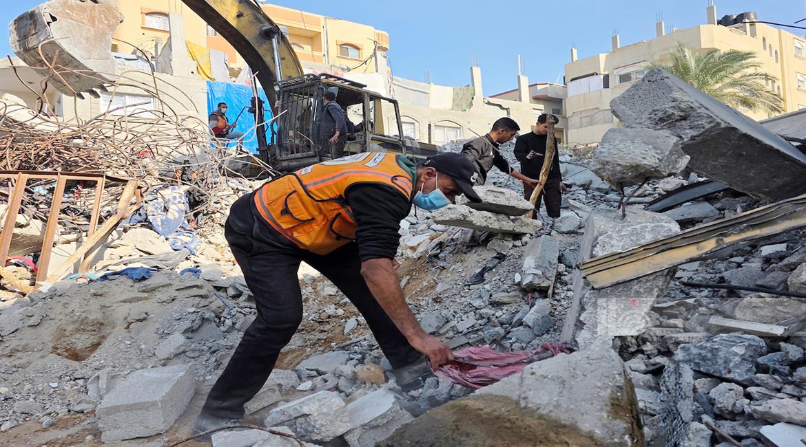 غزة - مواطنون يواصلون البحث عن جثامين الشهداء المفقودين تحت أنقاض المنازل المدمرة في مخيم المغازي وسط قطاع غزة، رغم الإمكانات شبه المعدومة وصعوبة الوصول إلى المواقع المنهارة