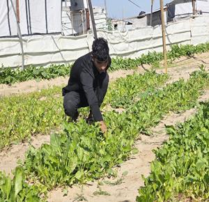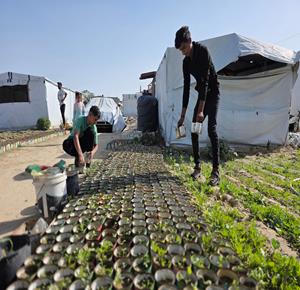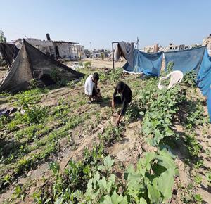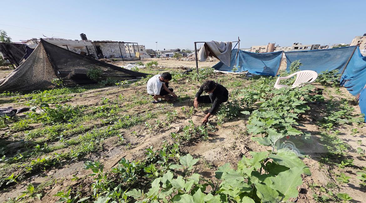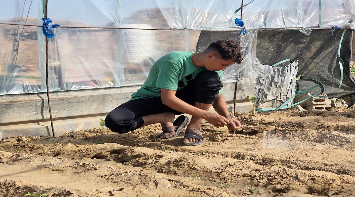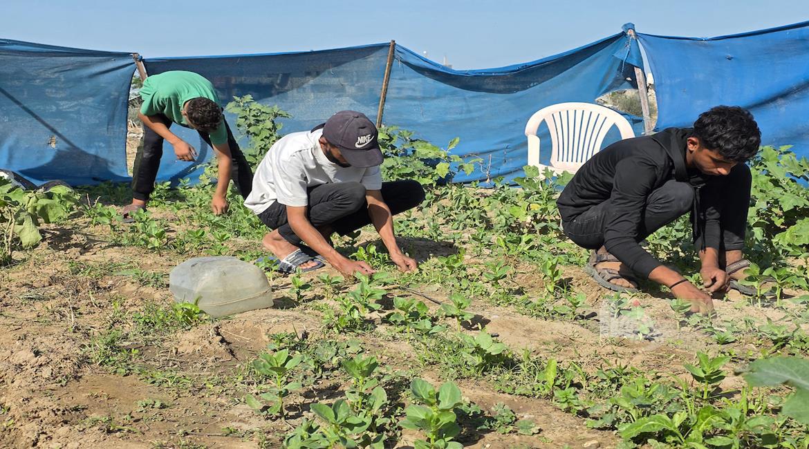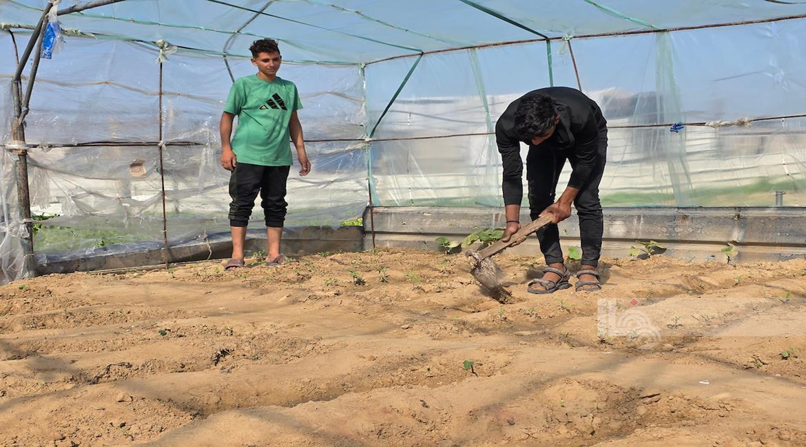 غزة - مزارعون يفلحون أراضيهم شرق خان يونس قرب الخط الأصفر، مستأنفين عملهم الزراعي رغم مخاطر المنطقة الحدودية