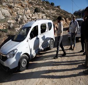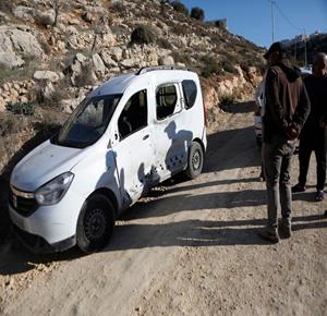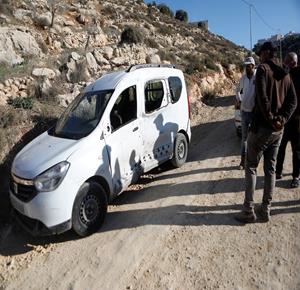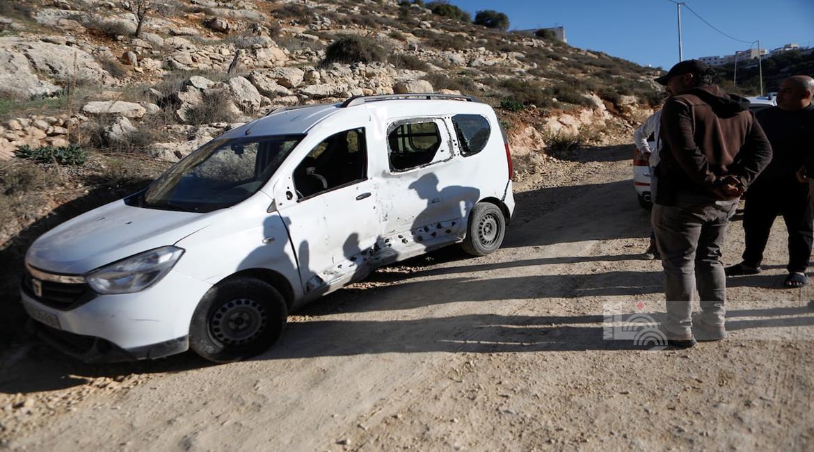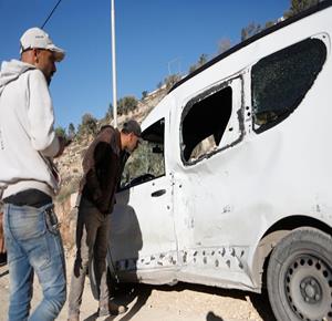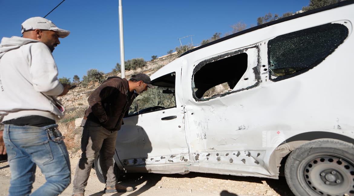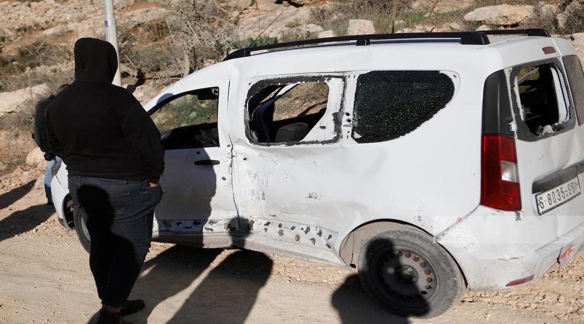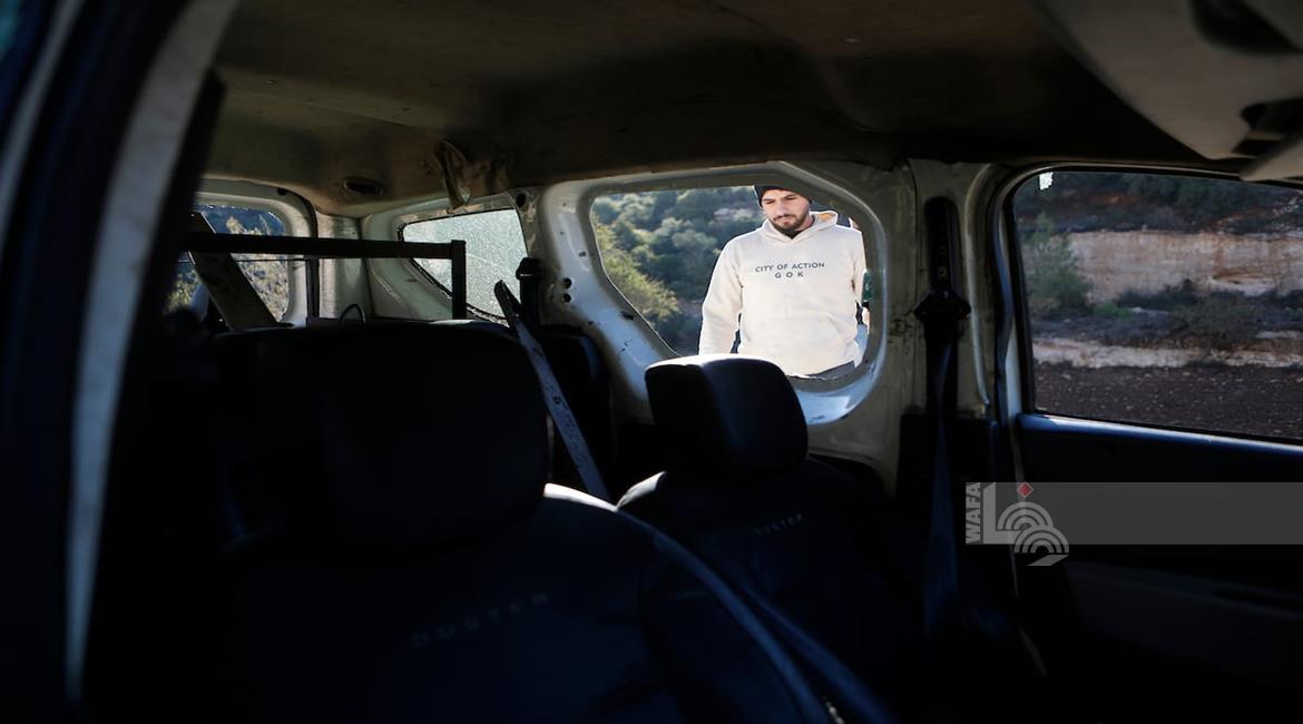 الخليل - مواطنون يتفقدون مركبة الشهيد مهند الزغير (17 عامًا) بعد إطلاق الجيش الإسرائيلي النار عليه في الخليل