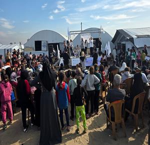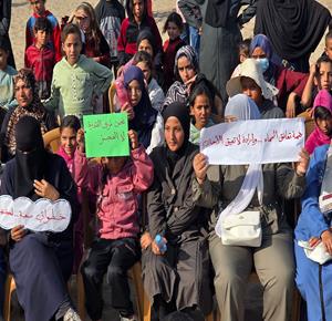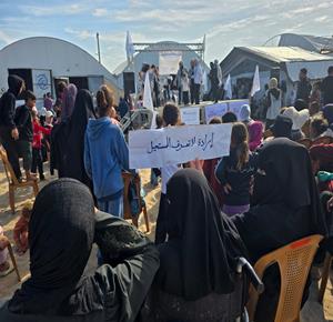 غزة - يشارك مواطنون من ذوي الإعاقة في فعالية بمناسبة اليوم العالمي للأشخاص ذوي الإعاقة في خان يونس