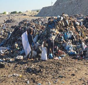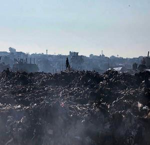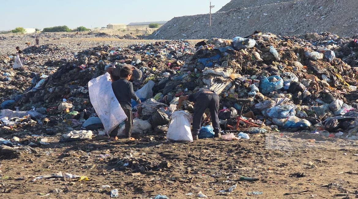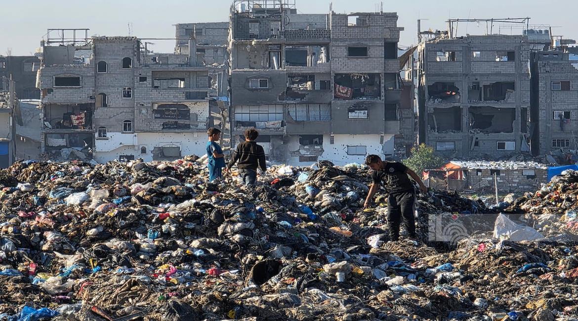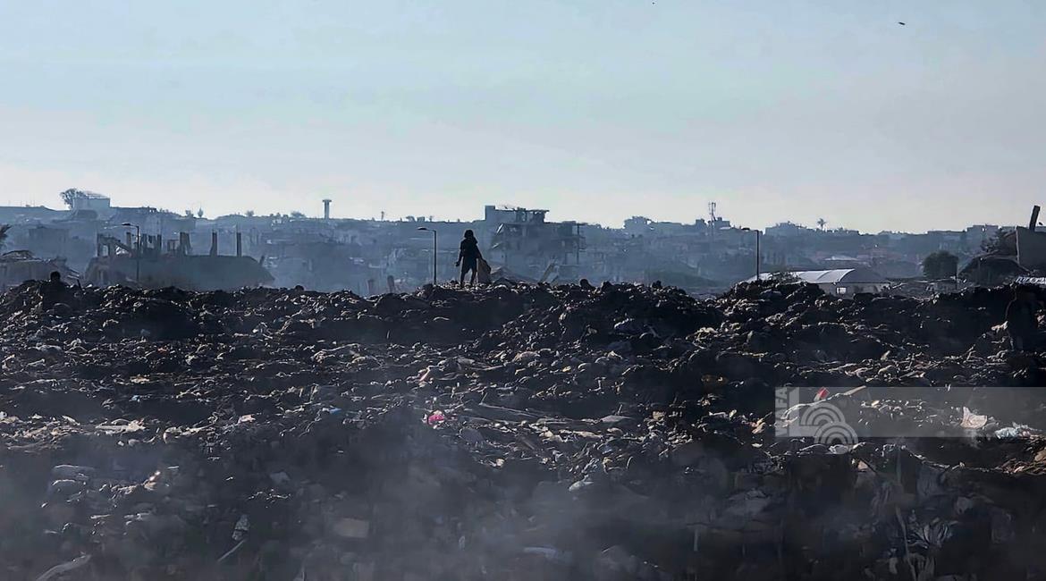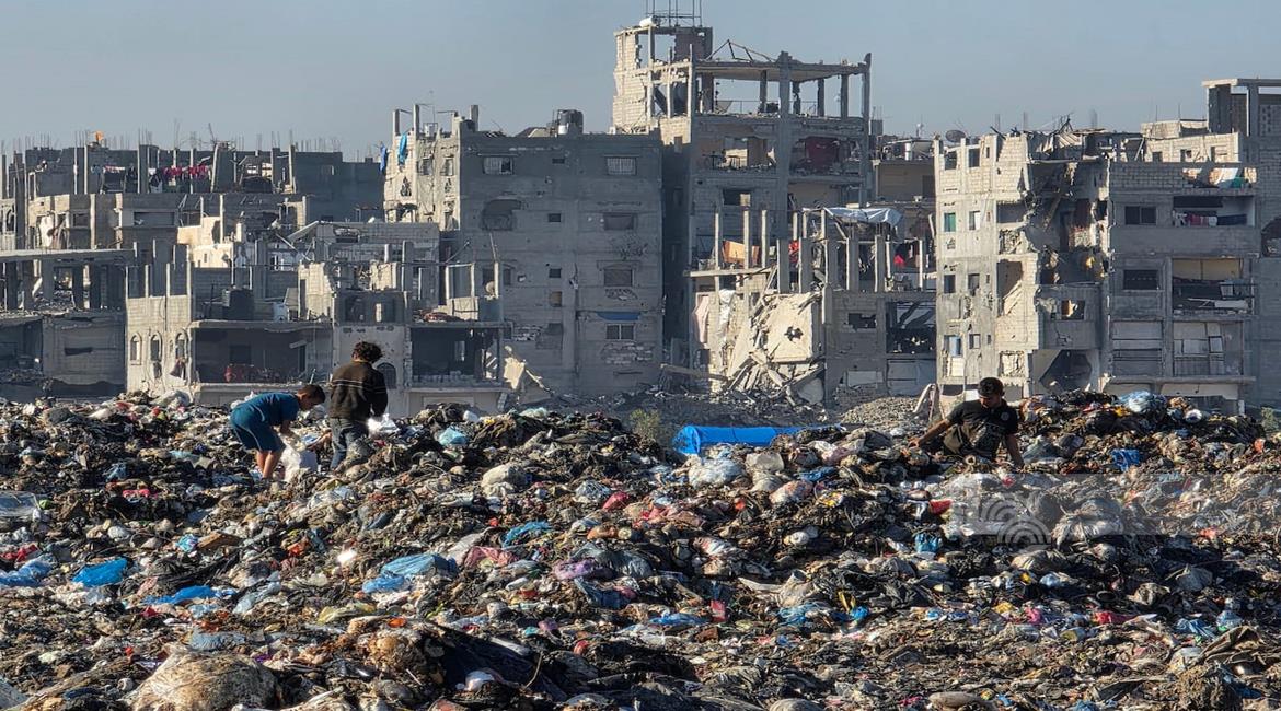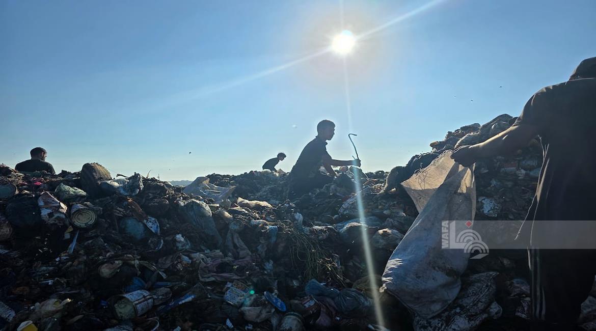 غزة - نازحون يبحثون في مكب نفايات شمال خان يونس لجمع البلاستيك لإستخدامه كوقود بديل للطهي
