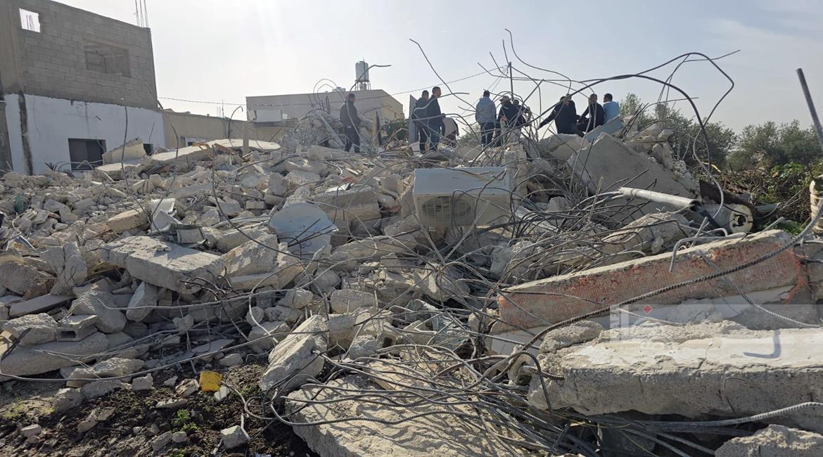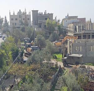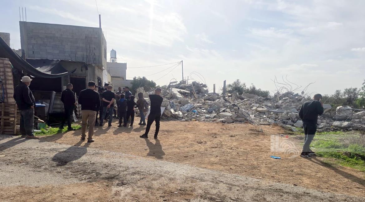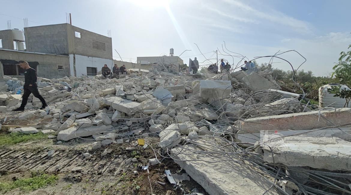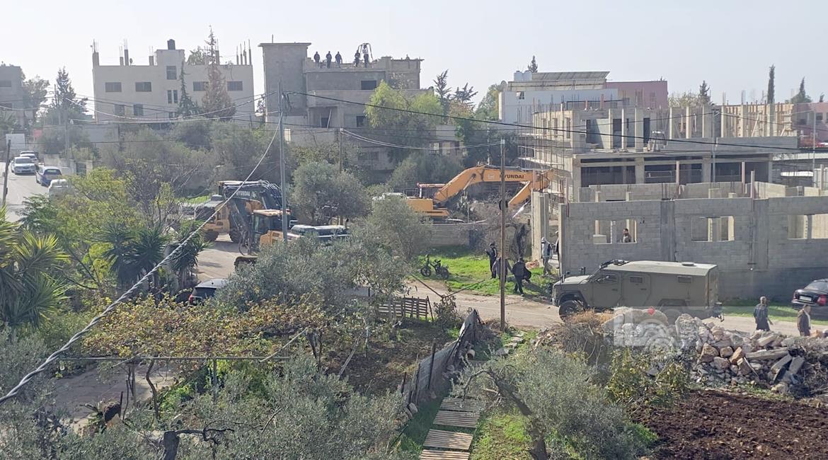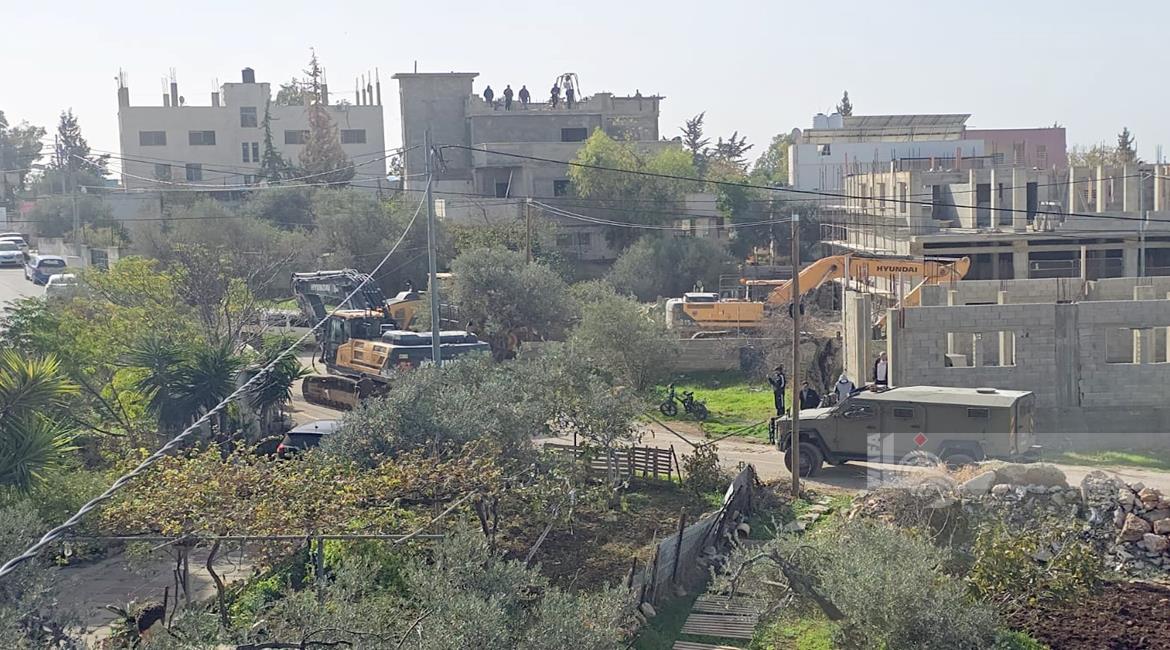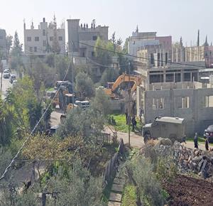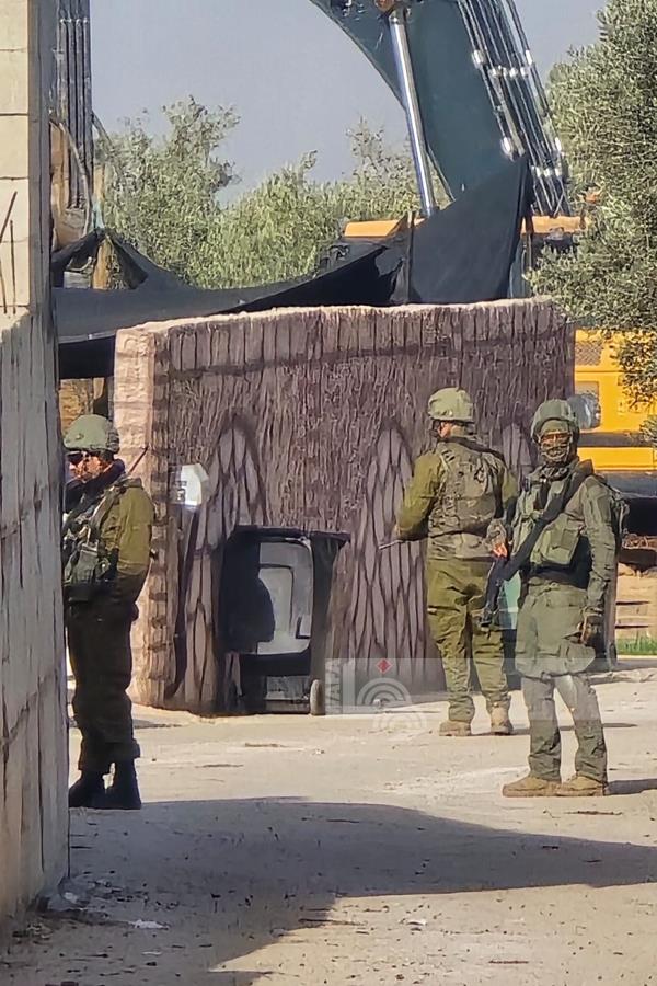 رام الله - الاحتلال يهدم منزلين وبركسا زراعيا للشقيقين نضال وأحمد محمود عبد الخالق في قرية بدرس